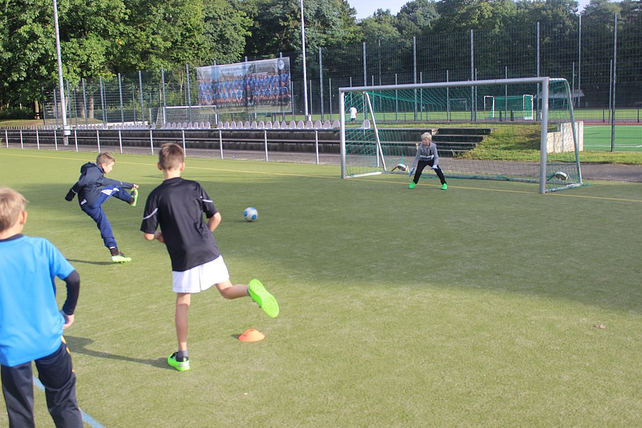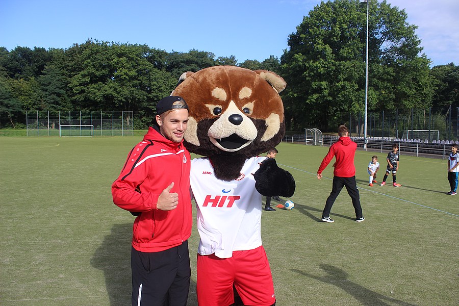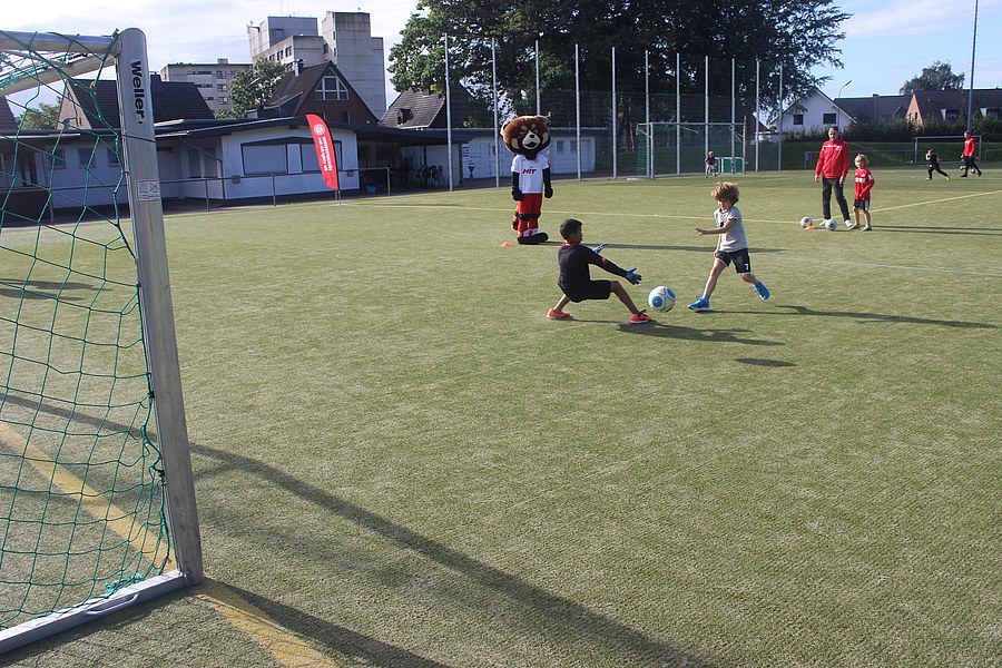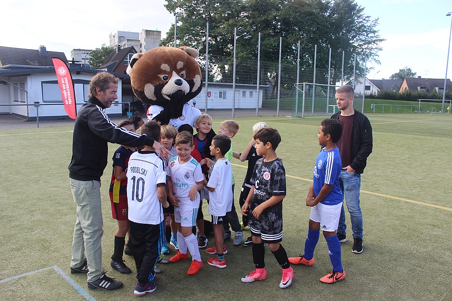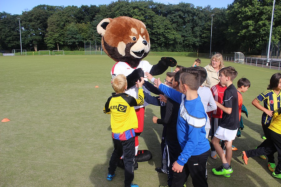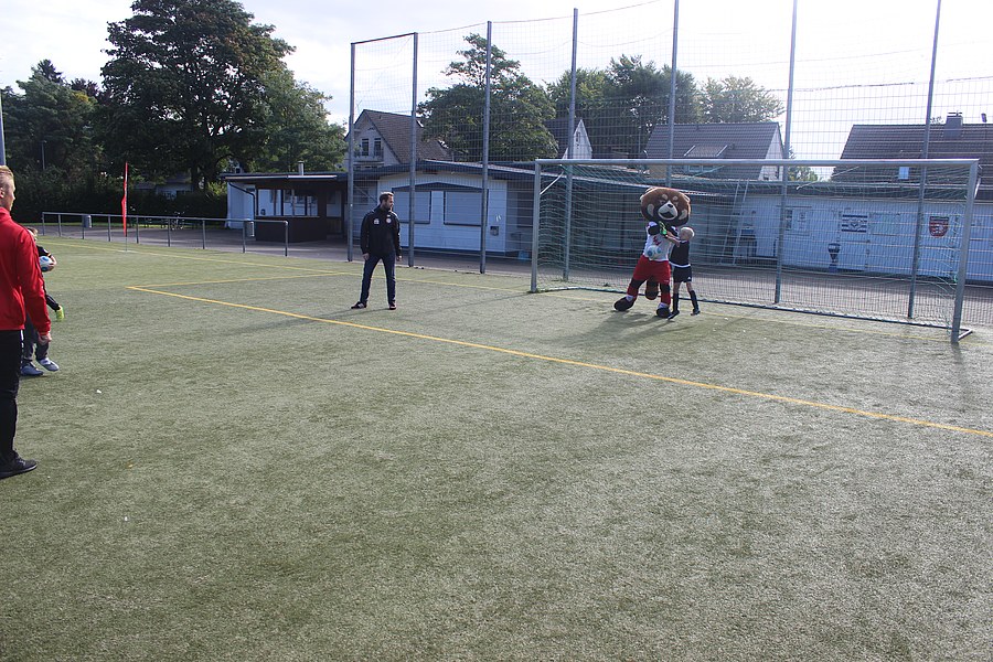Der Montag-Morgen startete mit lachenden Gesichtern an der KGS Schlossstraße: Die Fortuna-Profis Nico Brandenburger, Michael Kessel, Cimo Röcker und Maskottchen Fred statteten den Schülern einen Besuch ab. Nach einem kurzen Kennenlernen ging es für die Kids mitsamt der drei Profis auf den Platz. Neben Lattenschießen und Zweikampfübungen trainierten die Schüler auch ihre Schusstechnik. Dabei konnten sich besonders die vielen Torhüter mit tollen Paraden auszeichnen.
