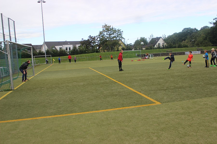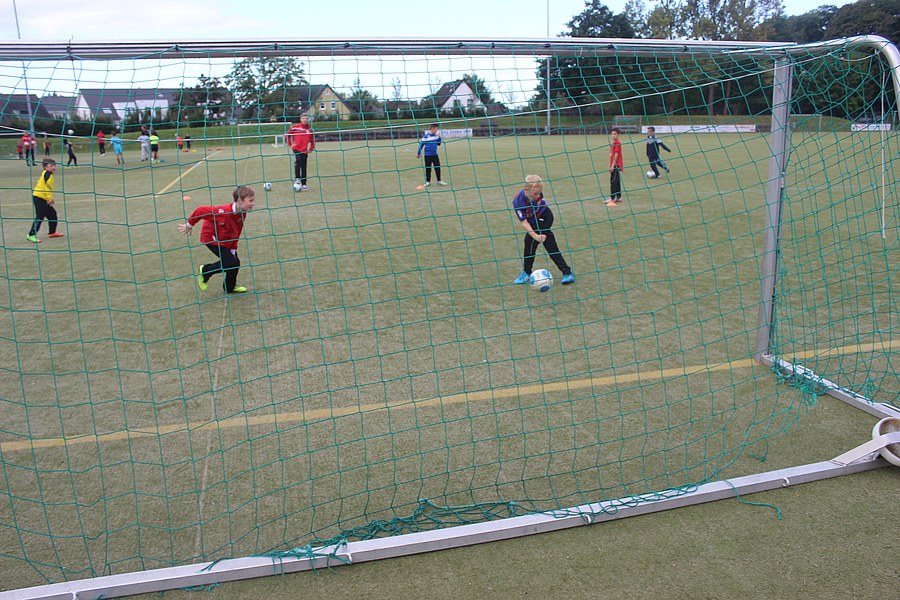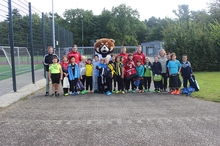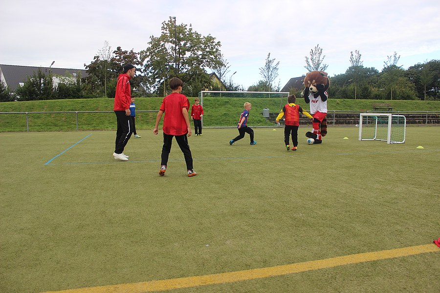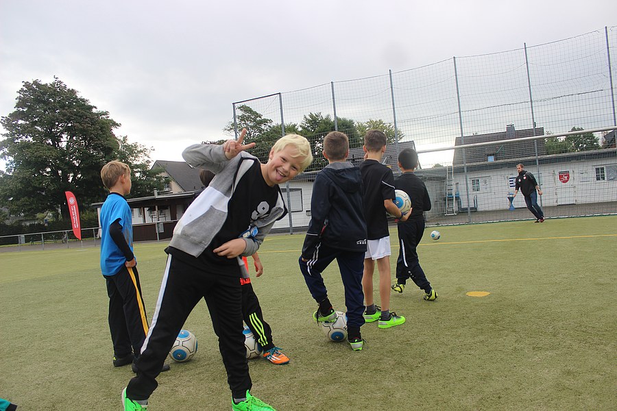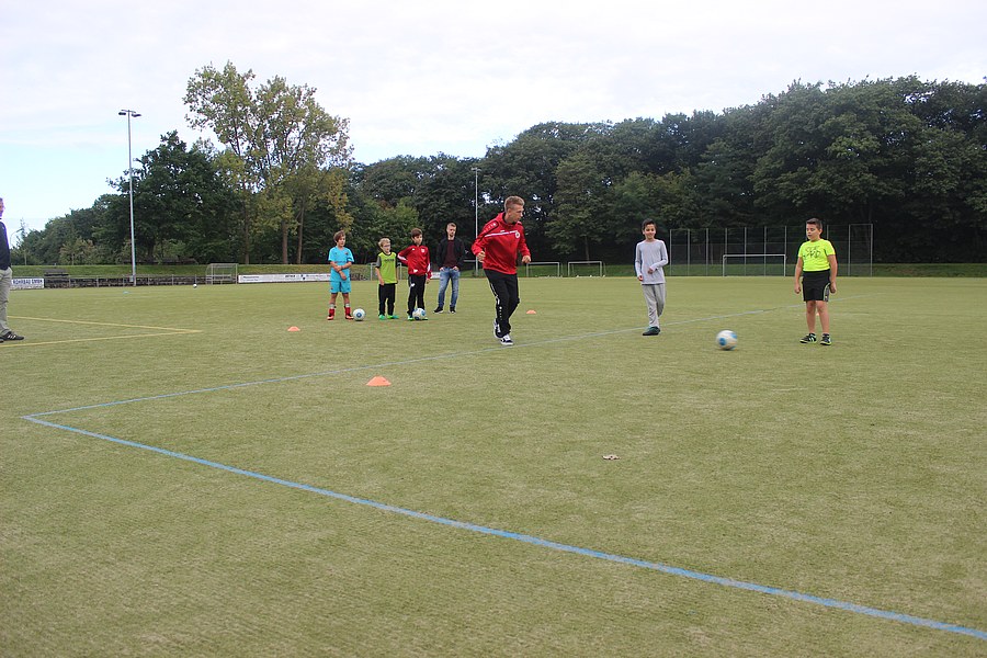 Der Montag-Morgen startete mit lachenden Gesichtern an der KGS Schlossstraße: Die Fortuna-Profis Nico Brandenburger, Michael Kessel, Cimo Röcker und Maskottchen Fred statteten den Schülern einen Besuch ab. Nach einem kurzen Kennenlernen ging es für die Kids mitsamt der drei Profis auf den Platz. Neben Lattenschießen und Zweikampfübungen trainierten die Schüler auch ihre Schusstechnik. Dabei konnten sich besonders die vielen Torhüter mit tollen Paraden auszeichnen.