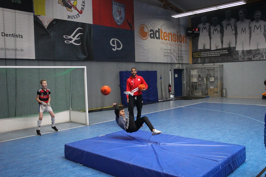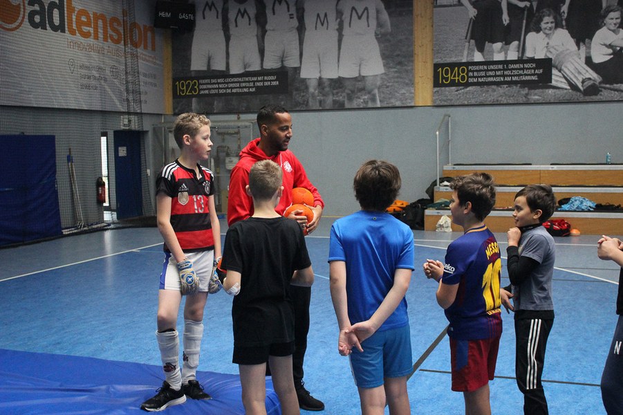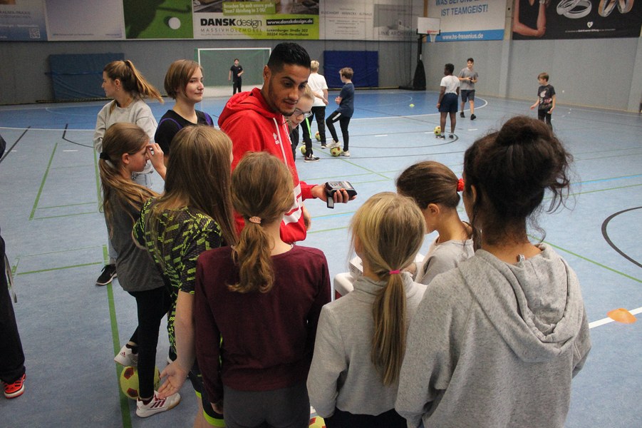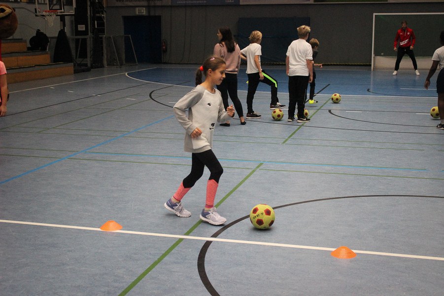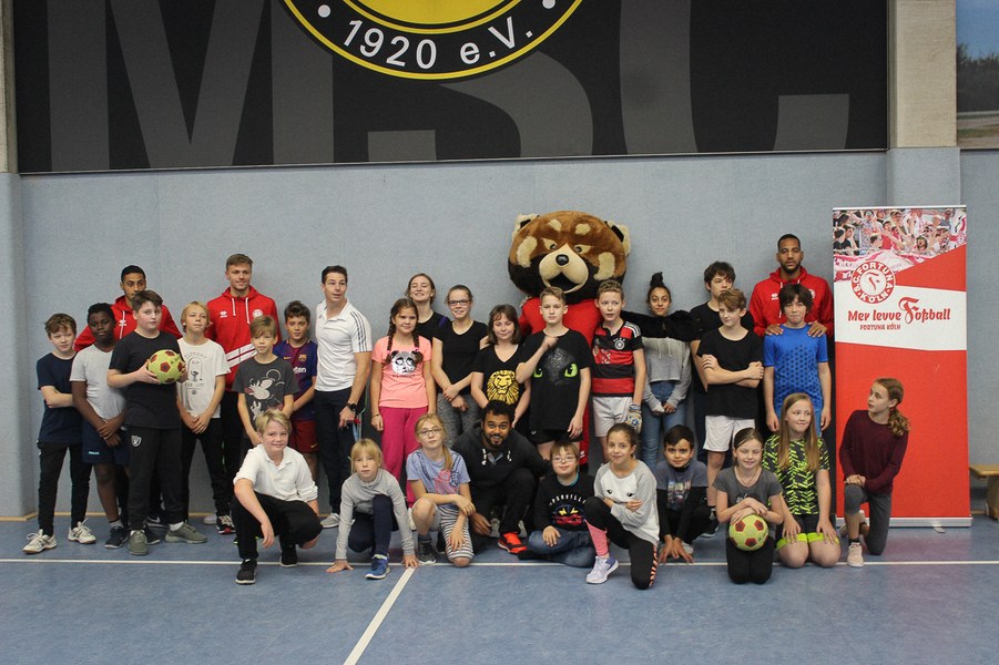 Das Programm an der weiterführenden Schule war in zwei Runden eingeteilt. Während mit den Klassen fünf bis sieben zunächst die Unterstufe an den Stationen Flugkopfball, Torabschluss und Dribbler-Station ihr Können unter Beweis stellen konnten, traten in der zweiten Runde die achte und die zehnte Klassen an. Unter den rund 60 Kindern, die unter der Leitung der drei Spieler in der Halle des Marienburger Sportclubs die Übungen absolvierten, waren auch Inklusionskinder. Eine Besonderheit der offenen Schule Köln, die alle Kinder, ob mit oder ohne Handicap, zusammenbringt. Nach der Einheit in der Halle ging es für alle Kinder zur Fragerunde mit anschließender Autogrammstunde.