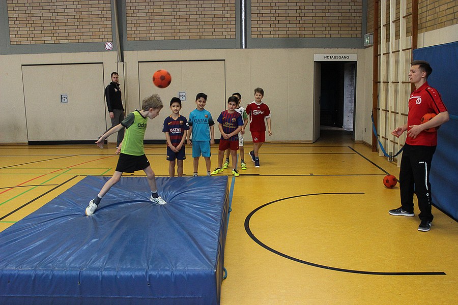 An der GGS Gotenring gehen 200 Kinder aus insgesamt 26 Nationen zur Schule. Serhat Koruk, Jannik Stoffels und Johannes Rahn trafen heute Morgen in Deutz ein, um hier mit den Schülern Fußball zu spielen und aus Ihrem Leben als Profisportler zu berichten. Sie schulten u.a. Torabschluss und Dribbling und gaben den Heranwachsenden einige Tipps mit auf den Weg. Nach dem schweißtreibenden Teil der Veranstaltung mussten sich die Profis wieder einigen Fragen stellen. Im Anschluss gab es neben Autogrammen und Postern auch Geschenktüten von Fortuna-Partner Schmitz und Nittenwilm für die Schüler. Am morgigen Tag stehen Koruk, Stoffels und Rahn wieder selbst auf dem Trainingsplan, wenn es in die unmittelbare Vorbereitung für das Pokal-Viertelfinale gegen Bergisch Gladbach 09 geht.