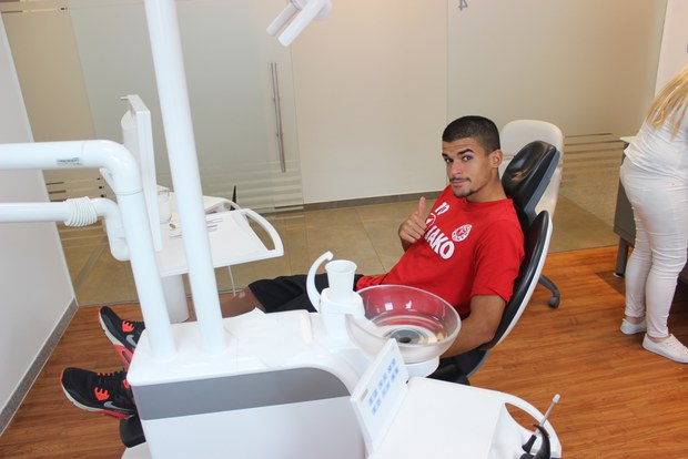 So hatte das Team von Trainer Uwe Koschinat die Möglichkeit beim Fortuna-Partner Zahnzentrum Köln sich einem zahnmedizinischem Check-Up zu unterziehen. Dr. Emre Uysal, Chefarzt & Klinikleitung Zahnzentrum Köln wies dabei, neben der Untersuchung, auf diese Zusammenhänge hin: "Auf Grund von antrainierten Bewegungsmustern können Fehlfunktionen im Bereich der Kiefer‐ und Kaumuskulatur auftreten, die im gesamten körperfunktionelle Konsequenzen nach sich ziehen können."