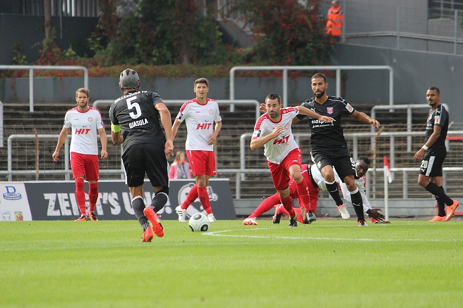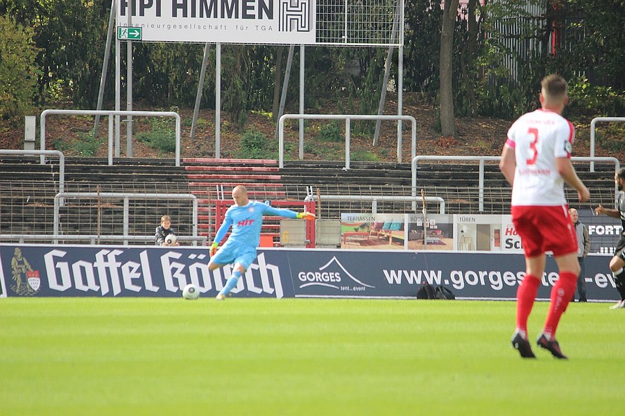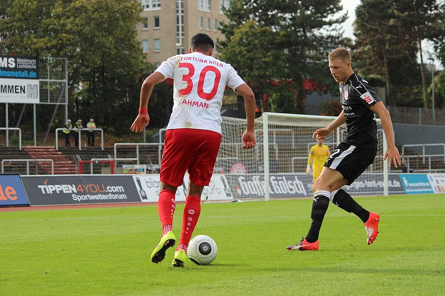Mit viel Dampf gingen bei Teams ins Duell im Südstadion. Es wurde eine hohe Schlagzahl angeworfen, sodass sich schnell besonders im Mittelfeld ein Abnutzungskampf entwickelte. Im Strafraum war aber lange wenig los, auch wenn Pintol und Dahmani jeweils für ihre Farben erste Abschlüsse verbuchten (7./9.). Halle war aber das etwas griffigere Team, das speziell im Zentrum mit dem auffälligen Fennell selbstbewusster auftrat. Nachdem Pfeffer allein auf das Kölner Tor zu lief und im letzten Moment von Flottmann gestört wurde, erspielten sich die Gäste auf dem Chancenzettel ein leichtes Übergewicht (17.). Das äußerte sich dann auch in Toren, als Fennell eine Flanke aus dem Halbfeld aus kurzer Distanz zur Hallenser Führung einköpfte (26.). Die Fortuna tat sich anschließend schwer, eine Antwort zu geben. Halle agierte kompakt und bot der Kölner Offensive keine Räume, um Druck aufzubauen. So brauchte es einen Eckball, an dessen Ende Souza am zweiten Pfosten in ausreichender Position köpfen konnte (37.). Halle kontrollierte die Partie aber auch weiterhin über die eigene Defensive und setzte mit einem Distanzschuss von Lindenhahn einen offensiven Akzent (43.). Es blieb aber bei der knappen Gästeführung zur Pause.