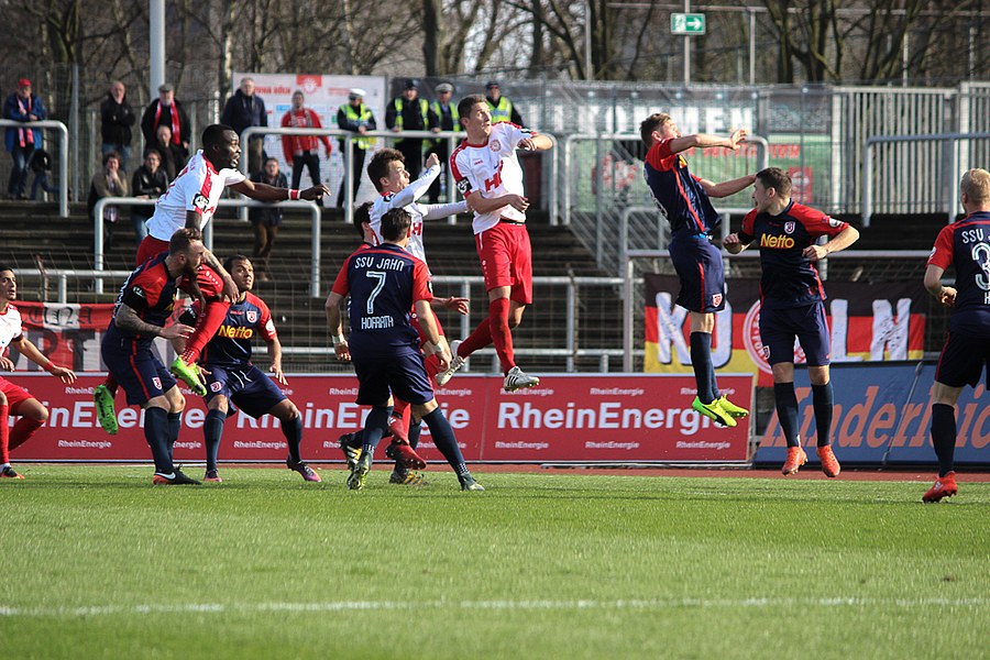 Der Sieg gegen Sonnenhof Großaspach war erst der zweite im laufenden Kalenderjahr 2017. Dabei ging einmal mehr Mittelfeldmann Markus Pazurek vorneweg, der 28-Jährige avancierte mit einem Treffer und einer Vorlage zum Matchwinner. Es folgten zwei torlose Remis in Halle und gegen Frankfurt sowie ein 0:3 beim VfR Aalen. Am Ende einer weiteren englischen Woche empfing man die Sportfreunde Lotte im Südstadion: Dabei hatte man Andersen nach einer Verletzungspause wieder auf dem Platz, der die Kölner in Front brachte. Anschließend musste der Mittelfeldmotor aber mit gelb-rot vom Platz. Trotzdem sicherten sich die Südstädter durch einen sehenswerten Freistoß von Pazurek und einen verwandelten Elfmeter von Alibaz in Unterzahl einen 3:0-Heimsieg und hatten so nach 32. Spieltagen bereits 43 Punkte auf dem Konto.
