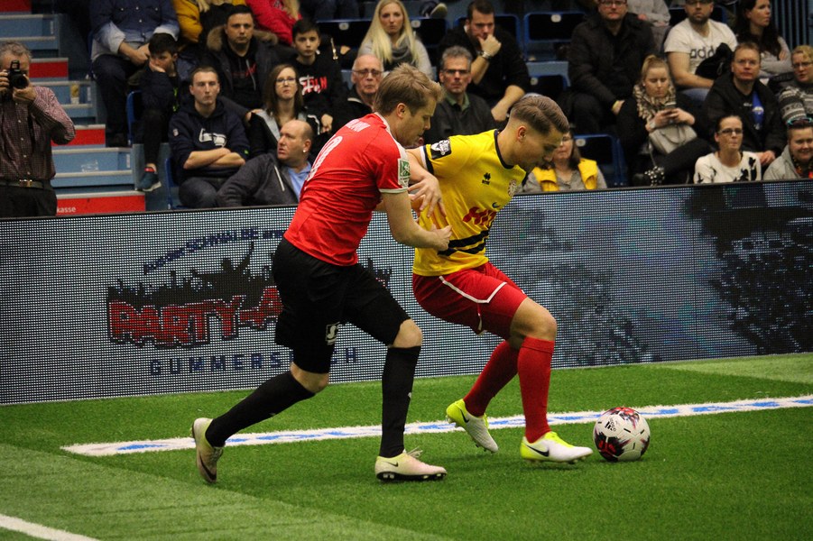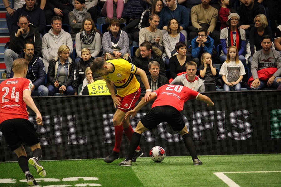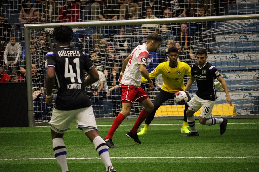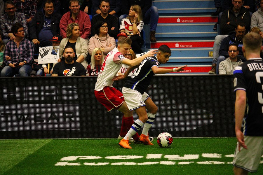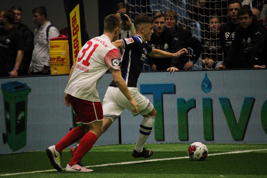 In der ersten Partie der Gruppe B traf Fortuna Köln in der SCHWALBE arena auf Bielefeld. Gegen den Zweitligisten gerieten die Kölner schnell durch ein Tor von Can Özkan in Rückstand. Semir Ucar erhöhte vor dem Seitenwechsel auf 2:0, Özkan noch vor der Pause auf 3:0. Im zweiten Durchgang verwandelte Ucar einen Neunmeter zum 4:0. Nur kurz danach gelang Thomas Idel der 1:4-Anschlusstreffer für die Südstädter. Es folgte das 2:4 durch Alem Koljic. Nico Ochojski hatte anschließend nach feinem Zuspiel von Ali Ceylan sogar die Chance zum 3:4, doch er scheiterte am Bielefelder Torhüter Baboucarr Gaye. So kam es, wie es kommen musste: Arminia konterte den Drittligisten aus und traf durch Cerruti Siya zum 5:2 und in der letzten Spielminute durch Joey Müller zum 6:2.