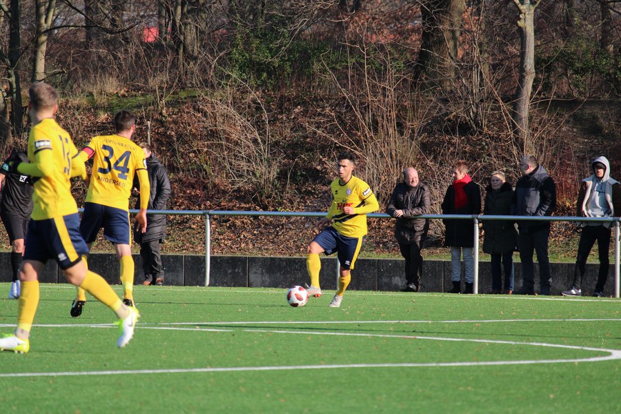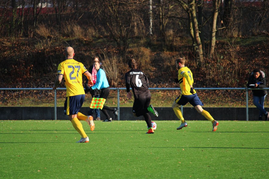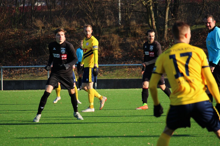 Die Fortuna begann mit Jannik Bruhns, Dominik Ernst, Back-up-Spieler Alwin Komolong, Nico Ochojski, Alem Koljic, Sebastian Schiek, Ali Ceylan, Okan Kurt, Kristoffer Andersen, Moritz Hartmann und Maurice Exslager. Gegen den Mittelrheinligisten übten die Südstädter von der ersten Minute an Druck aus. In der 8. Minute hatte Exslager nach Vorlage von Ernst die erste richtig gute Chance für das Kölner Team, doch Keeper Niklas Kirhoff wehrte den Schuss aus kürzester Entfernung ab.