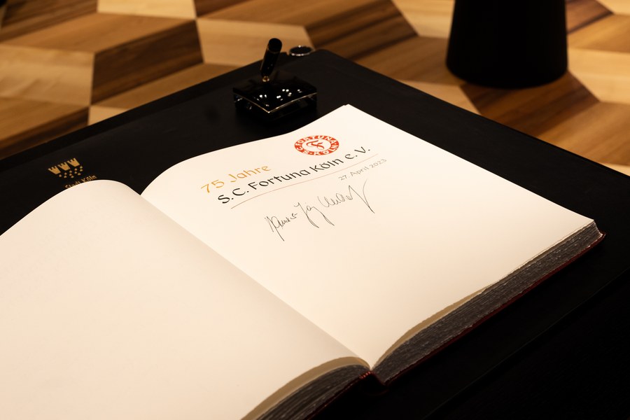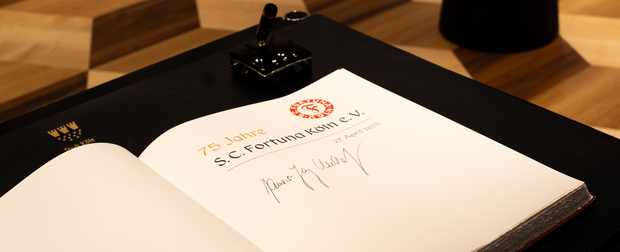 Der S.C. Fortuna Köln hatte am Donnerstagabend die große Ehre, sich ins Gästebuch der Stadt Köln einzutragen. Stellvertretend setzte Fortuna-Präsident Hanns-Jörg Westendorf seine Unterschrift unter den entsprechenden Eintrag.