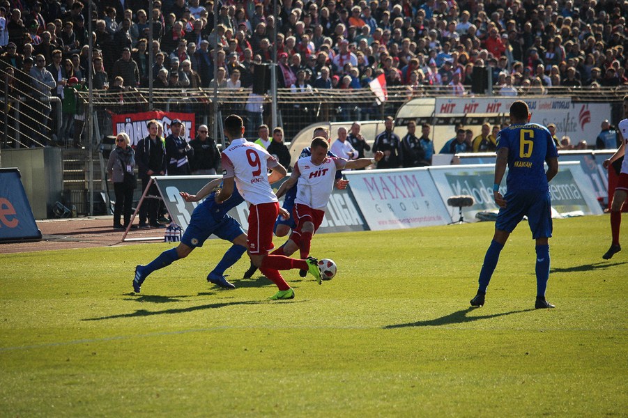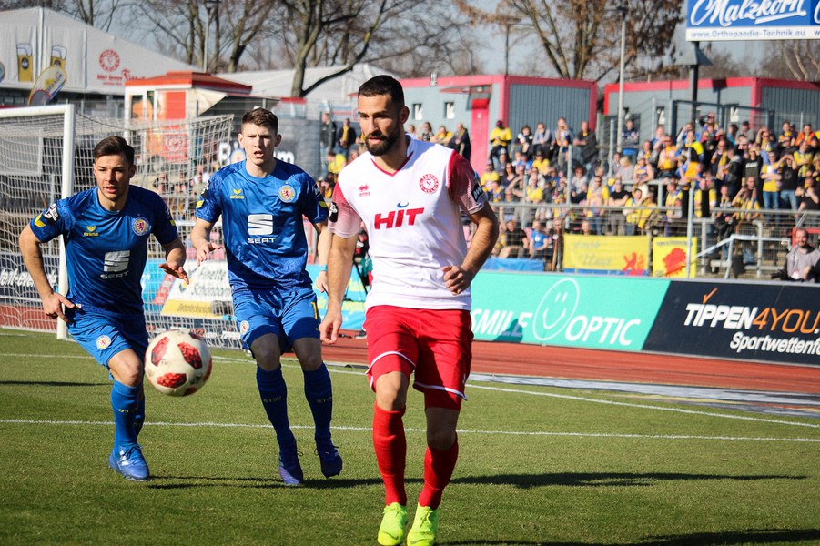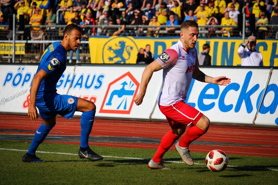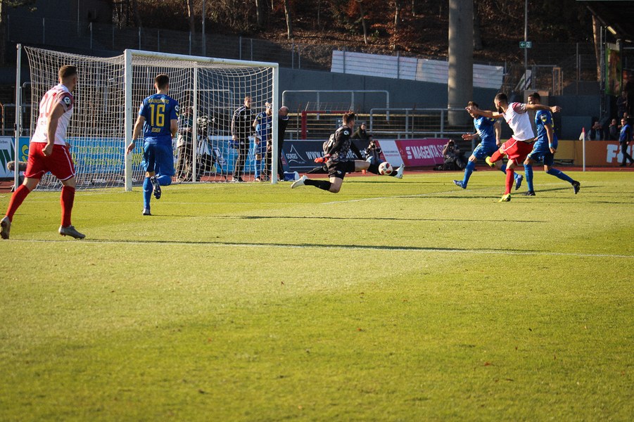 Die Fortuna war, ebenso wie im vergangenen Spiel gegen den FSV Zwickau bemüht, sich von Beginn an die höheren Spielanteile zu sichern. So fand das Team von Trainer Kaczmarek in der 4. Spielminute erstmals den Weg in Richtung Tor. Maik Kegel hob den Ball in den Sechzehner, wo Michael Eberwein sehenswert per Fallrückzieher zurücklegte. Ehe der Ball jedoch bei Benjamin Pintol ankam, funkte Torwart Jasmin Fejzic dazwischen. Auch Maik Kegel (11.) und Robin Scheu (14.) fanden ihren Meister in Fejzic. Die Distanzschüsse beider Fortunen lenkte der Keeper zur Ecke.