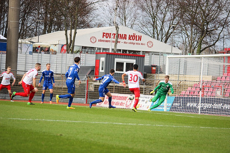 Fortuna Köln: Pazurek (20.), Theisen (48.), Kwame (53.), Flottmann (68.), Kessel (76.), Rahn (90.)