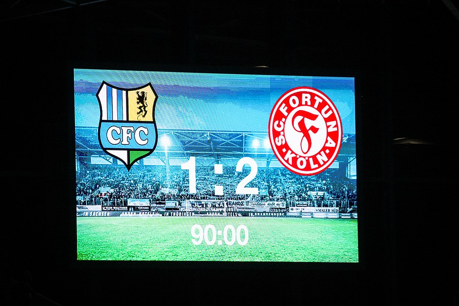 Die Chemnitzer kamen mit viel Schwung aus der Pause und glichen schnell aus. Frahn brachte den Ball nach guter Vorarbeit von Hansch aus fünf Metern auf den Gästekasten und bezwang Boss zum 1:1. Die Kölner antworteten aber prompt: Nach toller Kombination von Dahmani und Keita-Ruel versenkte Farrona Pulido den Ball aus 20 Metern trocken im unteren linken Eck (53.). Fortan spielte die Fortuna kontrolliert und ließ sich auch von der Gelb-Roten Karte für Dominik Ernst (61.) nicht aus der Fassung bringen. Die Himmelblauen aus Chemnitz versuchten vermehrt mit langen Bällen vor das Tor der Fortuna zu kommen, was die Defensive der Kölner aber nicht in Bedrängnis brachte. Auch in Unterzahl kam die Fortuna zu guten Chancen: So verfehlte Kyere das Tor aus kurzer Distanz nur knapp (69.). Auch der eingewechselte Falahen konnte den Ball nicht im Tor unterbringen (76.).