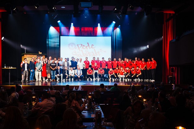 Tosenden Beifall bekam anschließend die Mannschaft bei der Vorstellung auf der Bühne. Zurecht. Denn das Team von Trainer Matthias Mink hat mit nun fünf Siegen in Folge nicht nur die Tabellenspitze der Regionalliga West erklommen, sondern auch für einen historischen Startrekord gesorgt.