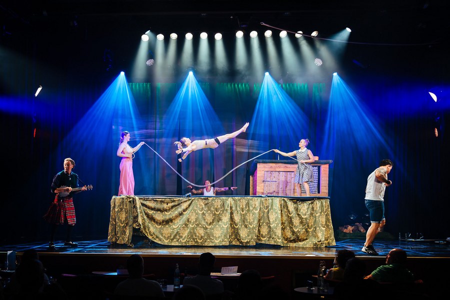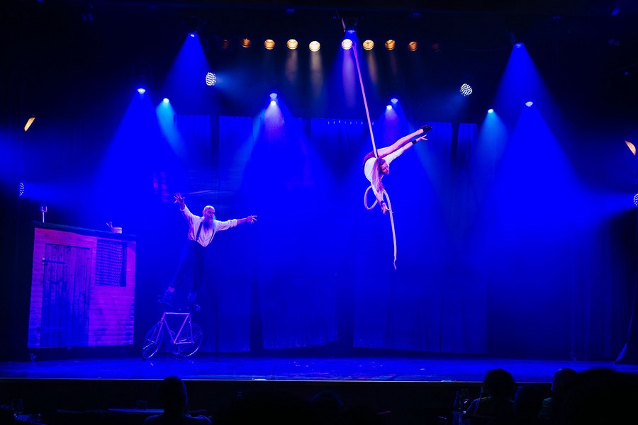 In einem rund zweistündigen Programm entführten anschließend grandiose Künstler und Artisten die 300 Zuschauer in die zeitgenössische Zirkuskunst. Musik, Comedy, Keulenjonglage, Partnerakrobatik, Teeterboard, Cyr Wheel und Hula Hoop. Dies alles verpackt in charmante kleine Geschichten, mal poetisch, mal augenzwinkernd, mal feierlich, und immer erstklassig.