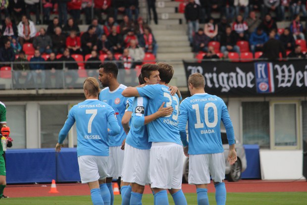 Nach dem 2:0-Sieg im Bitburger-Pokal bei Alemannia Aachen feiert die Fortuna damit den zweiten zu-Null-Sieg in Serie. Mit einer kontrollierten Offensive und einer stabilen Defensive verdienten sich die Kölner dabei den Erfolg. Rot-Weiß Erfurt zeigte sich zumeist harmlos und musste nach einem Platzverweis gegen Kammlott eine Halbzeit lang in Unterzahl spielen. Die Interviews zum Spiel gibt es hier bei FortunaTV.