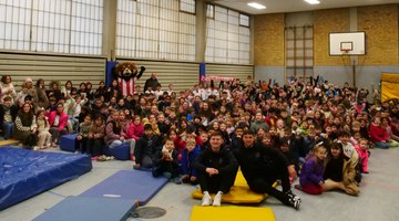 Fred und Fortuna-Profis begeistern 360 Kinder in Porzer Grundschule