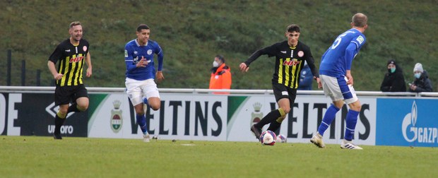 Im Hinspiel trennten sich beide Mannschaften unter Ausschluss der Öffentlichkeit 1:1 Unentschieden. Für die Fortuna traf Mike Owusu in der 63. Minute zur Führung. Der Torschütze war erst zwei Minuten vorher eingewechselt worden und verwerte sofort danach die Vorarbeit von Julian Günther-Schmidt. Es sah lange so aus, als würde die Fortuna den Dreier mit in die Kölner Südstadt nehmen, aber zwei Minuten vor Schluss gelang den Knappen noch der Ausgleich. Fatih Candan verwandelte einen direkten Freistoß und markierte damit den Endstand.