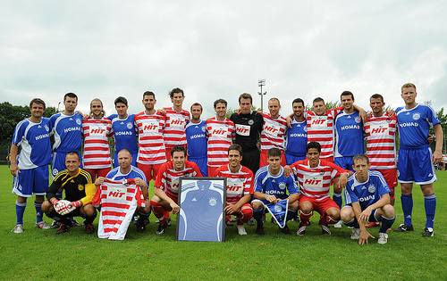 (Beide Teams stellten sich vor dem Anpfiff zum gemeinsamen Erinnerungsfoto auf, Foto: B.Lehmann)