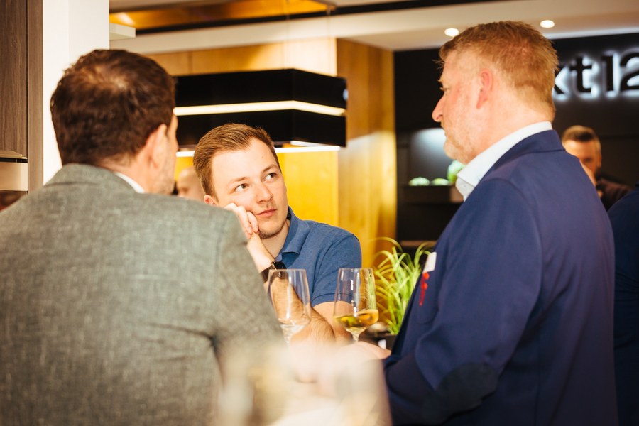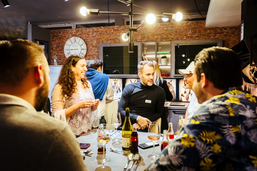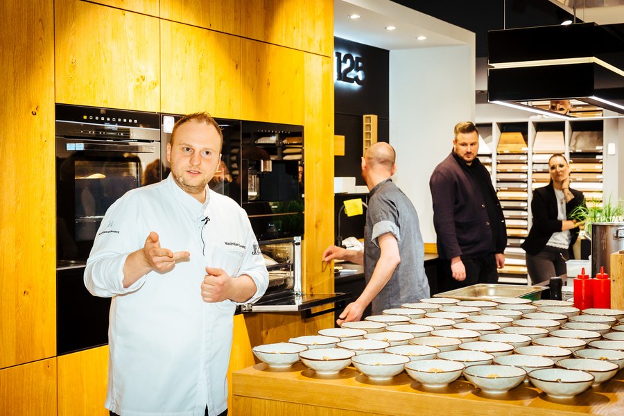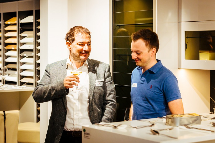 Das außergewöhnliche Kochvergnügen bei Fortuna-Partner Kitchen Concept in Bonn startete um 17:30 Uhr in nettem Beisammensein, bevor sich die Gäste ab 18 Uhr von Sternekoch Maximilian Lorenz bekochen ließen, der ein fünf Gänge umfassendes Menü auf die Tische zauberte. Lorenz, der bei seiner Ernennung als jüngster Sternekoch Deutschlands in die Geschichtsbücher einging, tischte ordentlich auf und verriet zu jedem Gericht einige Tipps. Feinsten Wein von Fortuna-Partner Christian Schardt gab es beim kulinarischen Ausflug nach Bonn obendrein.