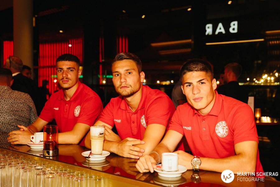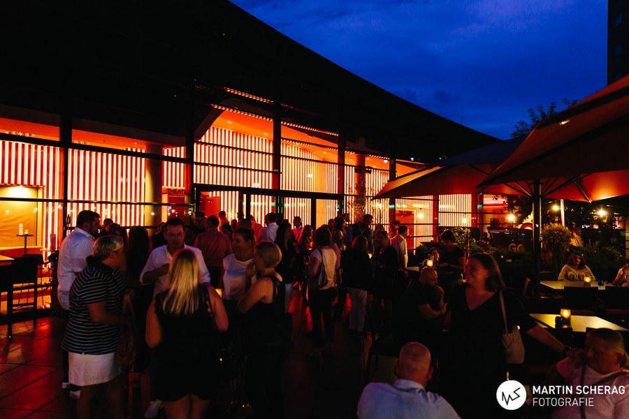Der Startschuss für den Fortuna-Abend fiel um 18 Uhr. Nach einem kurzen Empfang durch das Team der Fortuna kamen die Gäste im Bar- und Terrassenbereich des Varietés zusammen und kosteten die GOP-Pfefferwurst, die für den Abend extra aus dem GOP in Hannover angeliefert wurde. Um 19 Uhr betraten die Gäste den Theatersaal. Der große Varieté-Saal bietet Platz für 400 Gäste und überzeugt mit einem gemütlichen Flair. Nach einer kurzen Begrüßung durch Fortuna-Geschäftsführer Benjamin Bruns übernahm der Gastgeber des Abends das Wort: Kevin Grote. Der Geschäftsführer des GOP-Varietés führt das Familienunternehmen in der nächsten Generation fort.