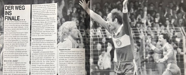 „Für mich als Spieler war das Finale in den zehn Jahren bei Fortuna der Höhepunkt. Wir hatten aber in der Woche davor intern sehr viele Diskussionen. Mit Abstand betrachtet, ärgert mich das. Wir fühlten uns aufgrund der Prämienregelung vom Schäng schlecht behandelt. Das hat uns abgelenkt. Wir hatten in dieser Saison was geleistet. Wir hatten gelesen, dass die Spieler des FC bei einem Erfolg 10.000 Mark bekommen sollten, wir sollten 2.000 erhalten. Warum kriegen die als haushoher Favorit für eine Selbstverständlichkeit das Fünffache, haben wir uns gefragt. Mit einer Teilnahme am Europapokal hätten wir das Geld sowieso wieder eingenommen.“