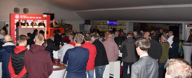 „Die letzten Monate waren für unseren Verein sehr schwierig,“ erklärte Präsident Hanns-Jörg Westendorf, der auf der Versammlung einstimmig wiedergewählt wurde. „Wir mussten uns nach dem Abstieg aus der 3. Liga in kürzester Zeit neu aufstellen und hatten dabei mit einigen Unwägbarkeiten zu kämpfen. Dank unserer Sponsoren, sind wir aber nicht ins Bodenlose gefallen, sondern können nach einer Phase der sportlichen Konsolidierung nun langsam wieder nach oben schauen.“ Um wieder in die Erfolgsspur zurückzufinden, sei es wichtig, auf das wirtschaftlich solide Fundament und eine größere Vorstandsmannschaft zurückgreifen zu können.