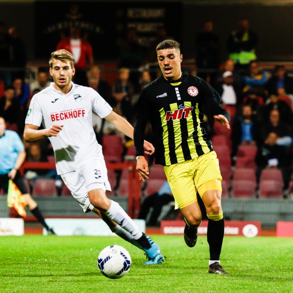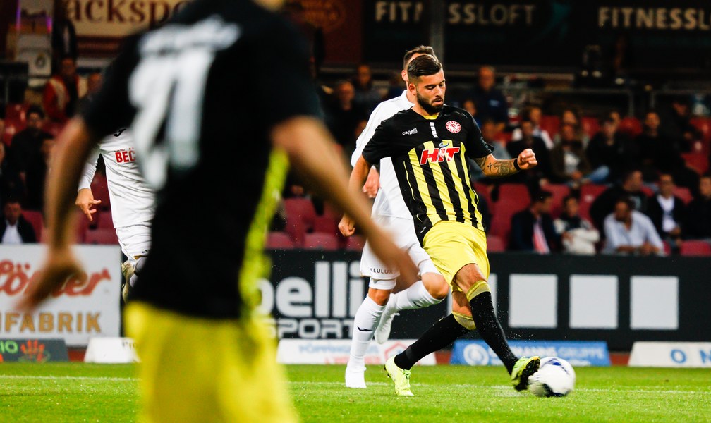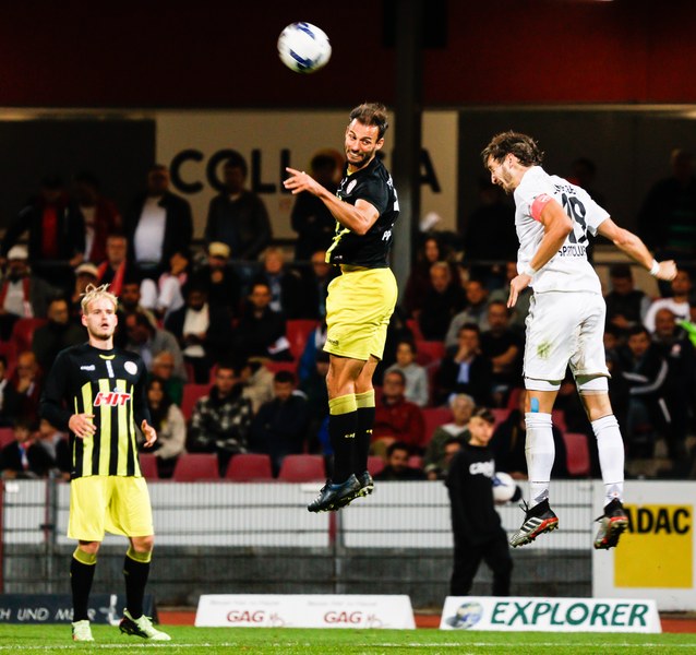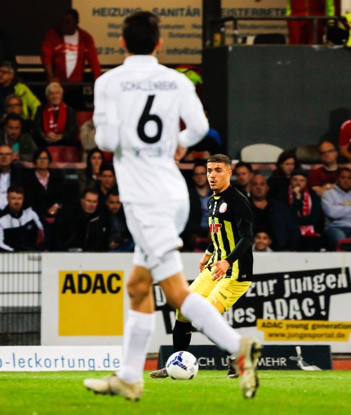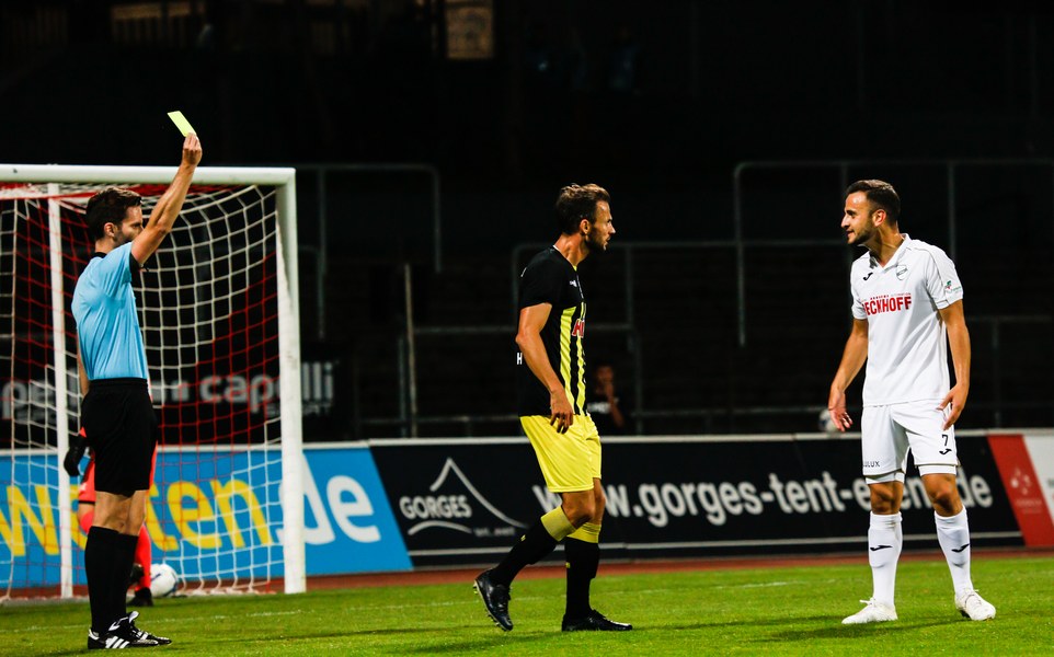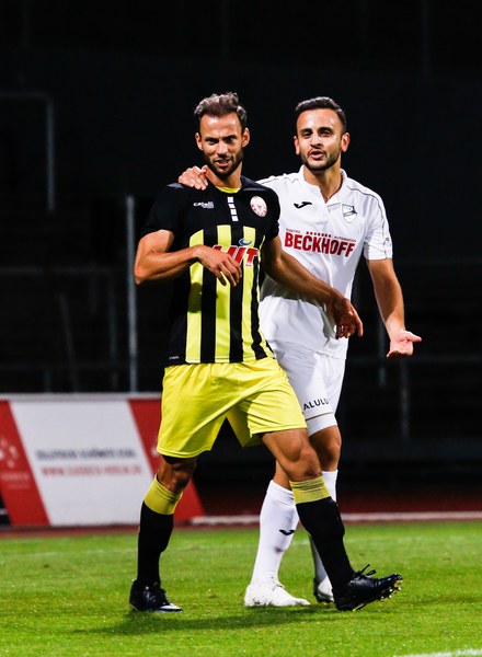 Das 4. Heimspiel der Saison im Südstadion begann mit einer Premiere. Erstmals in der Saison spielte Fortuna Köln mit dem schwarz-gelben Traditionstrikot. Die Startelf hatte Neuheiten auf zwei Positionen: Trainer Thomas Stratos brachte Roman Prokoph und Ali Ceylan für Lars Bender und Alem Koljic. Aber die Gäste fanden den besseren Start. Bereits in den ersten sechs Minuten hatten die Gegner schon zwei Ecken und einen Freistoß, und zeigten mit frühem Pressing, dass ein schweres Spiel auf die Fortuna warten würde. Für die ersten Möglichkeiten der Gäste sorgte Nico Hecker gleich doppelt. Zuerst zog er einen Schuss über das Tor (7.) dann scheiterte er an Noe Baba, der für den bereits überwundenen Rauhut auf der Linie klärte (9.). Ab der 17. Minute konnten die Kölner etwas aufatmen und den Druck von Verl besser kontrollieren. Gefährlich wurde die Fortuna dabei aber nicht, da die Versuche nicht konsequent genug zu Ende gespielt wurden. Besser machten es die Gäste auf der anderen Seite. Verl drückte weiter und traf das Tor mit einem Kopfball von Zlatko Janic (25.): 1:0 für den SC Verl. Was ein Glücksmoment für die Fortuna gewesen wäre, dauerte nur ein paar Sekunden: Die Gastgeber kamen zum vermeintlichen 1:1, aber es wurde auf Handspiel von Roman Prokoph entschieden. Dieser hatte einen gefährlichen Schuss ins Tor abgefälscht und erhielt daraufhin eine gelbe Karte (31.). Nur sechs Minuten später war es Jan Schöppener, der noch vor der Pause auf 2:0 erhöhte. Kurz vor dem Pausenpfiff startete Fortuna noch einen Versuch über die Außenbahn. Ali Ceylan versuchte, mit seinem Ball Roman Prokoph zu finden, aber seine Hereingabe geriet zu kurz (38.). So landete der Ball bei Blendi Idrizi, der aus der zweiten Reihe abzog, den Schuss jedoch über das Tor setzte (39.). Mehr gute Chance gab es nicht und so endete die erste Halbzeit.