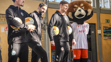 Die Sporteinheit wurde in zwei Durchgängen mit jeweils 30 Kindern durchgeführt. Begleitet wurden die Übungen von den Spielern Jannick Theissen, Vleron Statovci und Rafael Garcia sowie Maskottchen Fred, das für zusätzliche Motivation und Begeisterung sorgte. Im praktischen Teil der Veranstaltung durchliefen die Kinder drei verschiedene Fußballstationen, die gezielt auf grundlegende Fertigkeiten ausgerichtet waren: Torschuss, Dribbling und Passspiel. Unter Anleitung der Spieler konnten die Schülerinnen und Schüler ihre technischen Fähigkeiten verbessern.