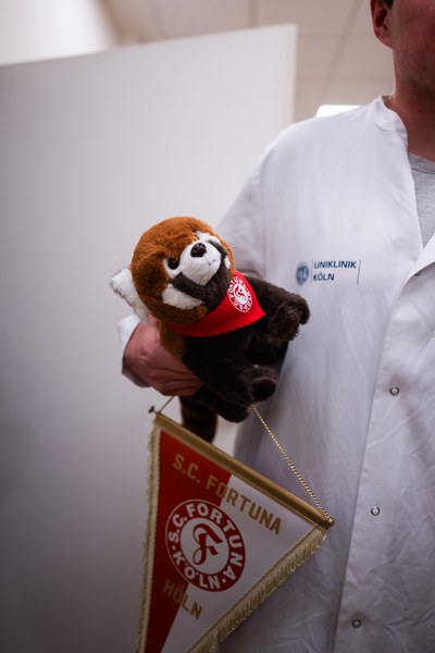 „Die Fortuna-Delegation hat unseren kleinen Patientinnen und Patienten viel Freude geschenkt. Dieses Engagement bedeutet den Kindern und unserem Team unglaublich viel“, erklärt Dr. Florian Wartenberg, Facharzt in der Klinik für Kinder- und Jugendmedizin der Uniklinik Köln.