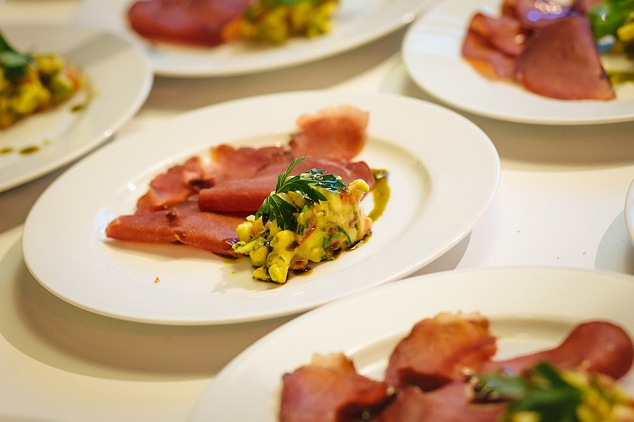 Gemeinsam kochten die knapp 30 Gäste in drei Gruppen ein exotisches Drei-Gänge-Menü mit jeweils einem Profi an ihrer Seite. Als Vorspeise gab es einen marinierten Bresaola mit Avocadococktail. Das Hauptgericht war ein Kalbsfiletmedaillon auf Bohnen-Birnen-Gemüse. Eine Limettencreme mit Nektarinen/Pfirsichsalat rundete das Menü schließlich ab.