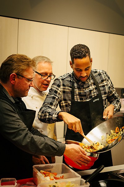 Gemeinsam kochten die Gäste in drei Gruppen ein Drei-Gänge-Menü mit jeweils einem Profi an ihrer Seite. Durch das gemeinsame Kochen wuchs das Fortuna-Netzwerk weiter näher zusammen und die Partner konnten sich mal abseits eines Spieltags mit anderen Partnern und den Fußballprofis austauschen.