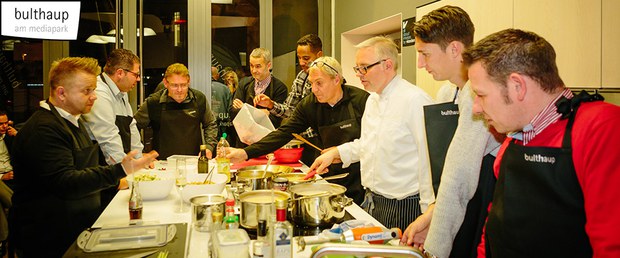 Kochevent bei bulthaup am Mediapark - Pazurek, Uaferro und Rahn kochen mit Fortuna-Partnern