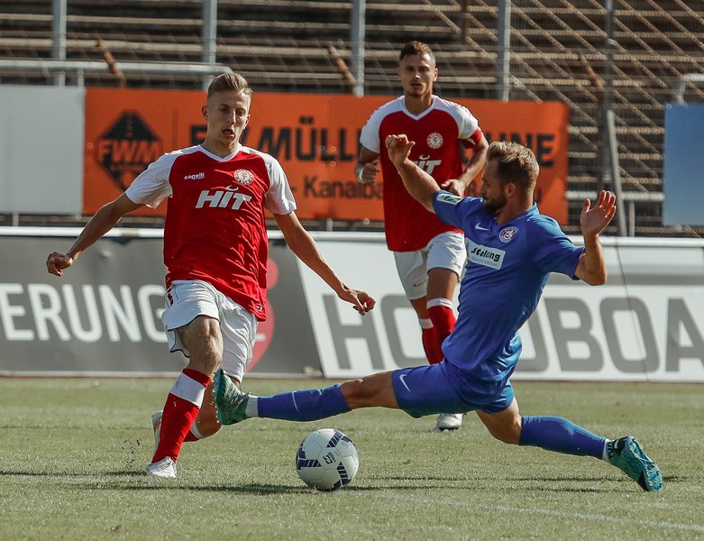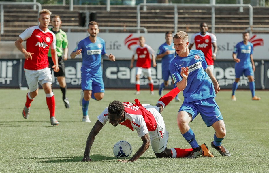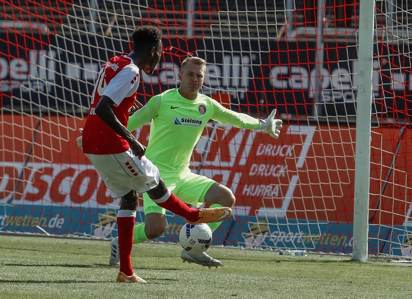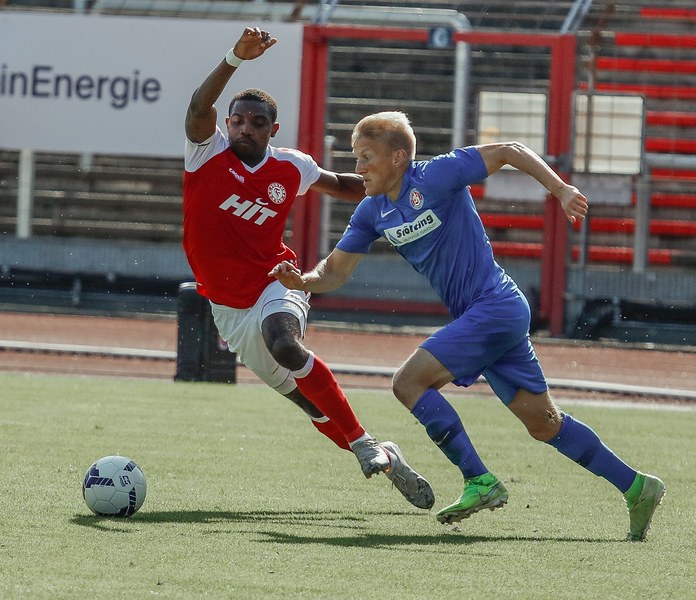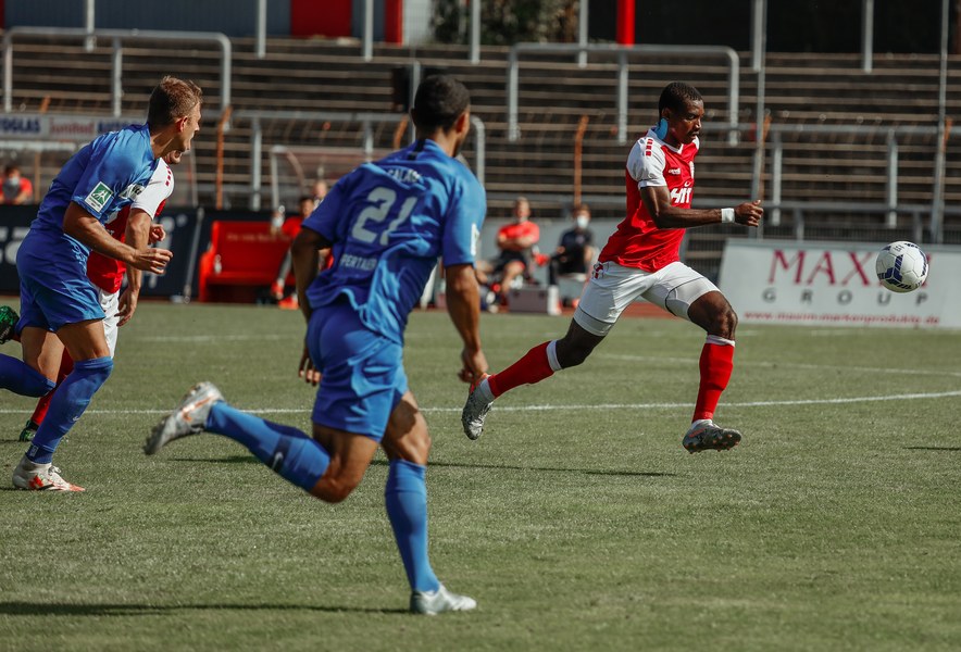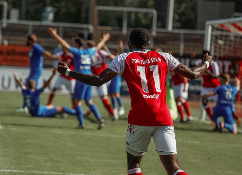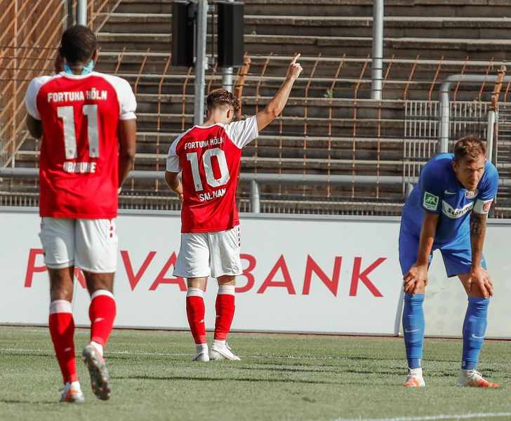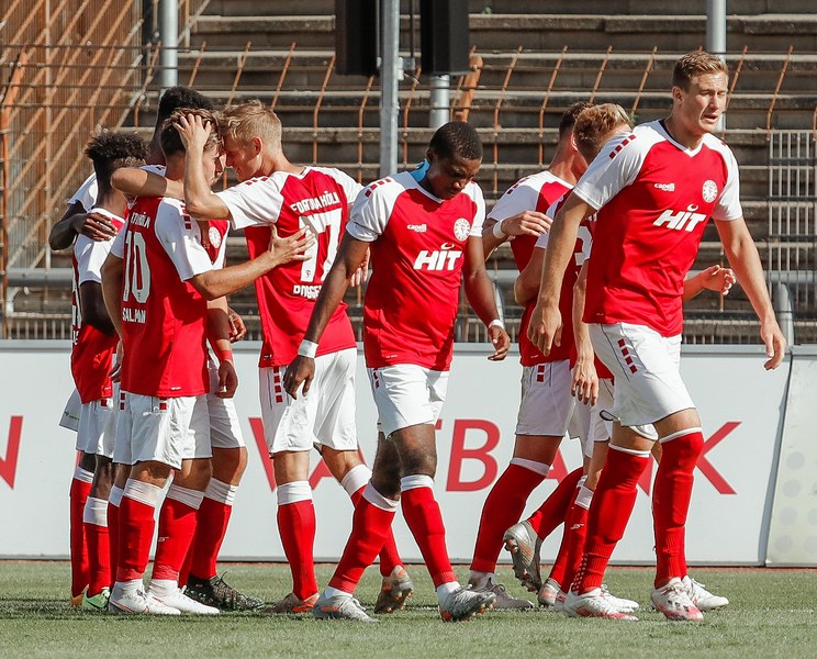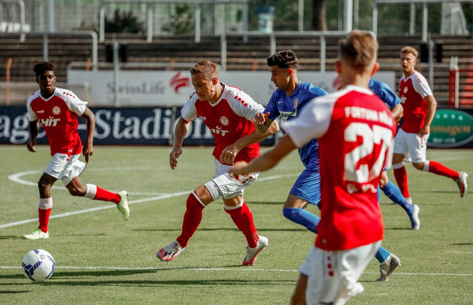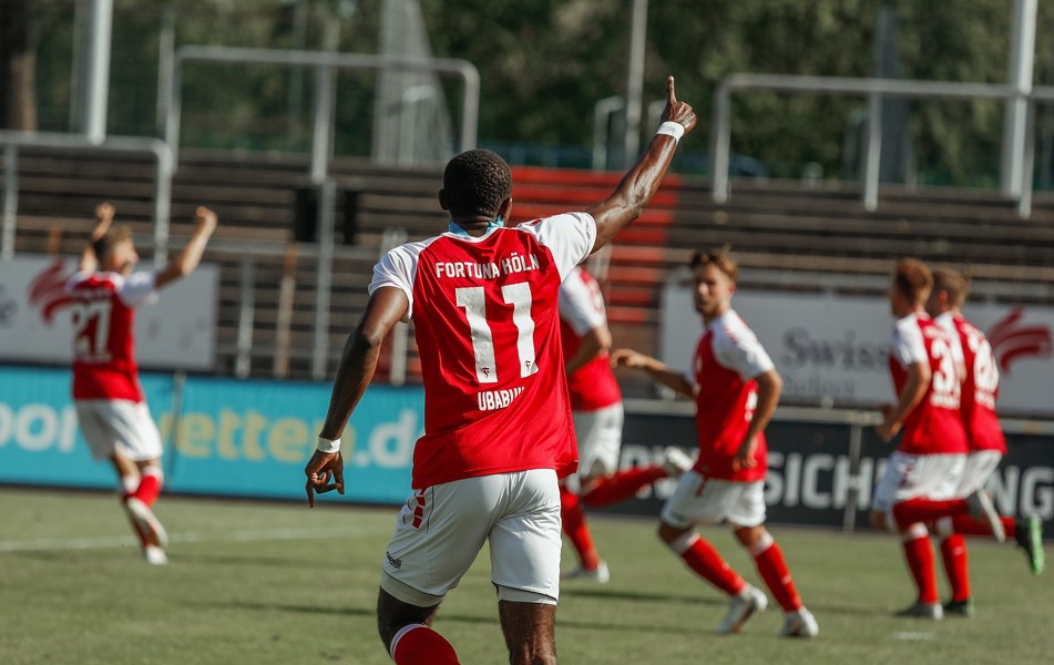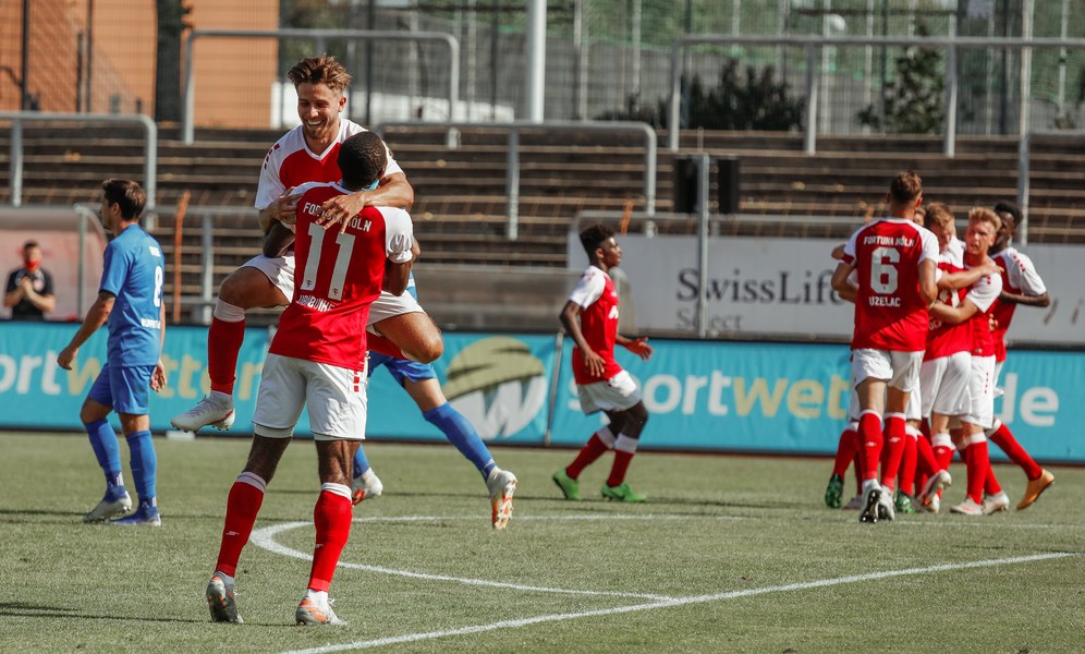 In der zweiten Hälfte war zunächst wieder die Fortuna am Drücker. Erst war es Ubabuike (47.) und kurz darauf Salman (50.), die beide zu spät den Abschluss fanden. In der 52. Minute war es erneut Salman, der mit einem Kopfball im Sechzehner Torwart Lübcke prüfte. Die folgenden Minuten waren von einigen weiteren guten Chancen unserer Fortuna gezeichnet. Owusu und Günther-Schmidt setzen aber den Ball knapp neben und über das Tor. Dann ein Aufschrei im Südstadion. Mike Owusu wurde in der 57. Minute im Strafraum zu Boden geschubst. Der Pfiff des Schiedsrichters blieb nicht lange aus. Franko Uzelac trat zum fälligen Elfmeter an, scheiterte aber am Keeper. Die Fortuna ließ sich von dem Rückschlag aber nicht unterkriegen und erspielte sich weiterhin zahlreiche gute Chancen und belohnte sich schließlich für den Aufwand. In der 69. Minute war es dann Hamza Salman, der von der Strafraumgrenze mit einem sehenswerten Schuss den 2:1 Führungstreffer erzielte. Quasi im Gegenzug egalisiert Beyhan Ametov mit einem weiteren Fernschuss die Führung der Fortuna in der 71. Minute. Fortuna behielt den Sieg jedoch im Blick und baute Druck auf den Gegner auf. Nach einer Flanke von Nadjombe auf Salman, der den Ball auf Ubabuike verlängerte, legte dieser quer auf Owusu der zum 3:2 traf (74.). Dies bedeutete die erneute Führung der Fortuna. In der 75. Minute war es dann soweit: Jan Luca Rumpf gab sein Debüt für die Fortuna und wurde für Francis Ubabuike eingewechselt. Nach 84 Minuten war dann auch für Julian Günther-Schmidt der Arbeitstag zu Ende. Er wurde durch Roman Prokoph ersetzt. Mit viel Einsatz holte der frische Mann auf dem Platz kurz nach seiner Einwechslung eine Ecke raus. Aus dieser resultierte dann der erste Kopfball von Jan-Luca Rumpf , welcher allerdings über dem Tor landete. In der 87. Minute kam dann Batuhan Özden zu einigen Spielminuten, indem er für den Torschützen zum 3:2 Mike Owusu eingewechselt wurde. Kurz darauf ertönte auch der Pfiff des Schiedsrichters. Ein Spiel mit einer turbulenten zweiten Halbzeit ging vorüber und hatte ein gutes Ende für die Jungs aus der Südstadt. Mit nun zwölf Punkten aus vier Spielen bleibt man vorerst weiterhin Tabellenführer.
