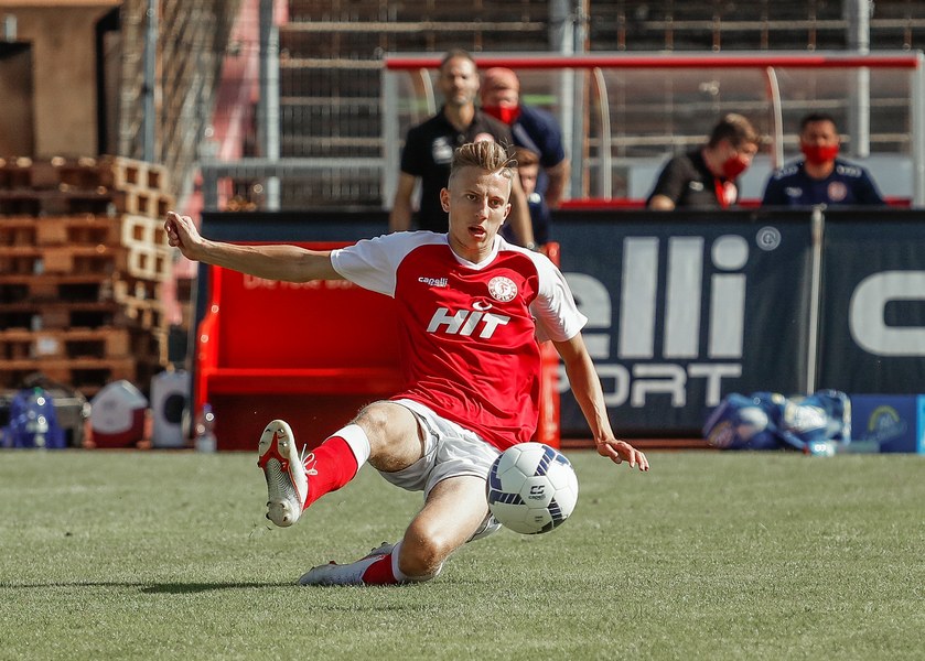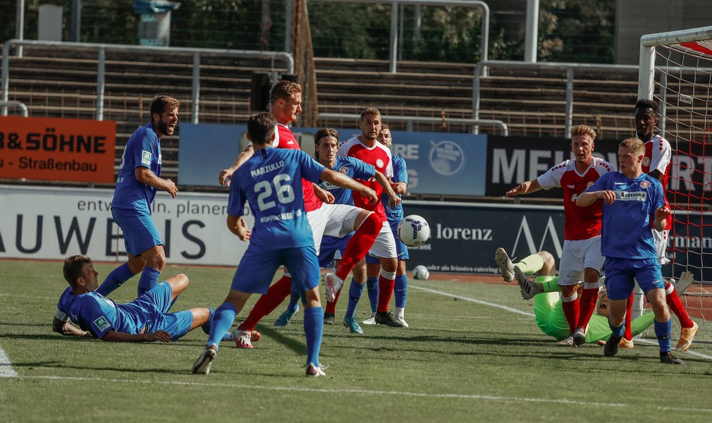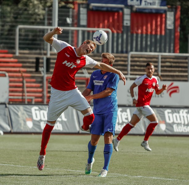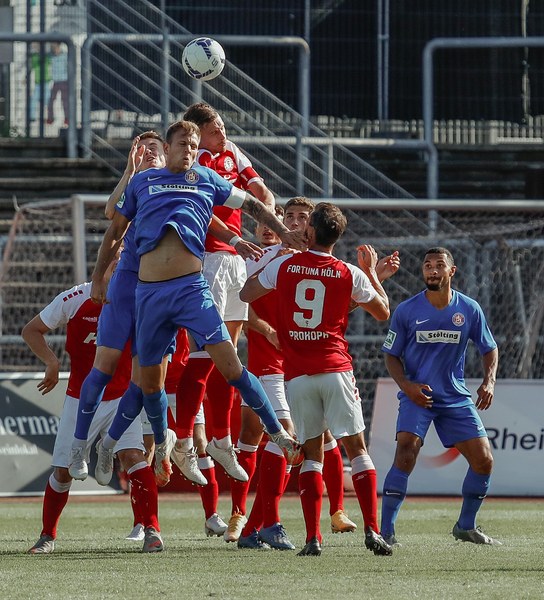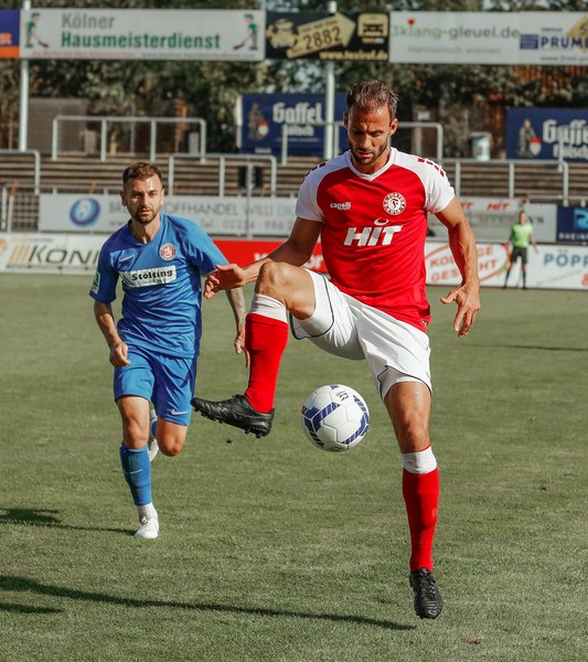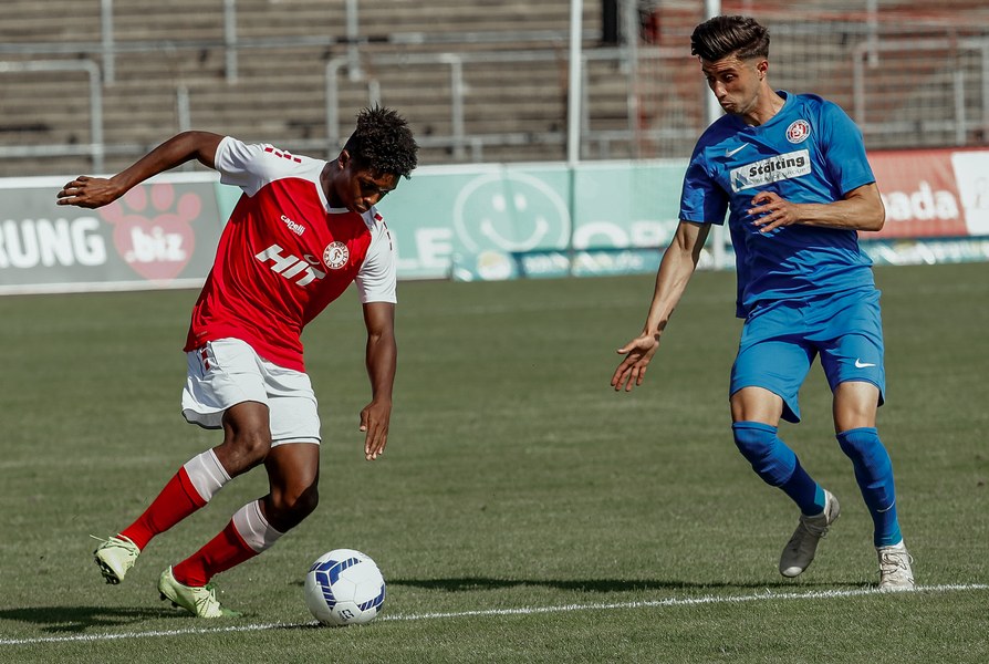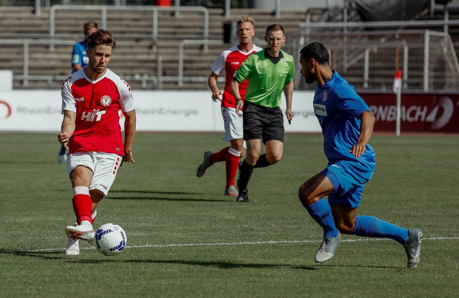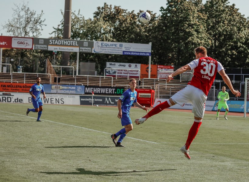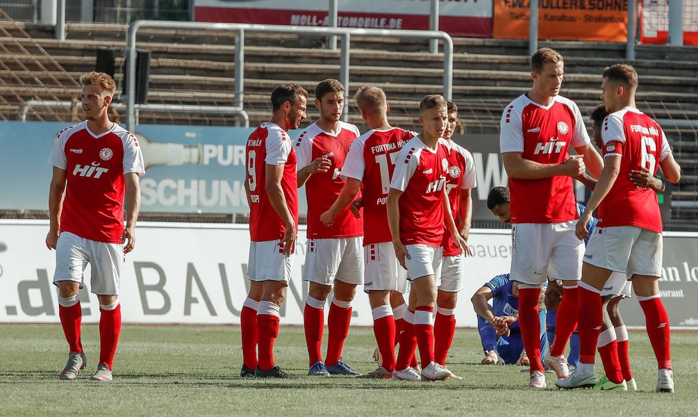 Heute stand das zweite Heimspiel unserer Fortuna an. Zu Gast war der Wuppertaler SV. Das Spiel musste leider kurzfristig und ziemlich unverhofft aufgrund der erhöhten Inzidenzzahl ohne Zuschauer stattfinden. Im Vergleich zur Startaufstellung am vergangenen Mittwoch in Homberg gab es einen Wechsel: Hamza Salman stand für Roman Prokoph auf dem Platz. Das Spiel begann direkt sehr zweikampfbetont, denn beide Mannschaften waren gewillt das Spiel für sich zu entscheiden. In der 10. Minute musste unsere Fortuna einen frühen Rückschlag hinnehmen. Lars Bender musste verletzungsbedingt den Platz verlassen und wurde durch Jean-Marie Nadjombe ersetzt. Der zweite Rückschlag folgte direkt. Nach einer gefährlichen Ecke des Wuppertaler SV, war es Marco Königs der per Kopf vollendete und den WSV mit 1:0 in Führung brachte (12.). Im direkten Gegenzug verpasste Löhden nach einer Ecke nur knapp den Ball (12.). Nach einem Einwurf war es dann erneut Löhden, der den Ball zunächst gut abschirmte und dann gefährlich vor das Tor bringen konnte - auch wenn diesen dann letztlich keiner im Tor unterbringen konnte (14.). Die Fortuna war nun besser im Spiel und setze einige gezielte Angriffe. Nach einem gegnerische Einwurf eroberte Mike Owusu erst den Ball und leitete schließlich einen gefährlichen Doppelangriff ein (18.) Doch sowohl Francis Ubabuike als auch Julian Günther-Schmidt trafen nicht zum Ausgleich. In einem sehr körperlichen Spiel pfeift der Schiedsrichter sehr genau, was zur Folge hat, dass es viele Unterbrechungen gab und der Spielfluss dadurch ein wenig gehindert wurde. In der folgenden Phase kam es dadurch nicht wirklich zu gefährlichen Chancen. In der 29. Minute traf Mike Owusu nach einem gut gespielten Konter nur den gegnerischen Keeper. Kevin Rauhut war es in der 31. Minute, der bärenstark gegen den gegnerischen Gianluca Marzullo parierte. Im Gegenzug konterte die Fortuna durch einen wichtigen Ballgewinn im Mittelfeld von Julian Günther-Schmidt, der auf den im Abseits stehenden Ubabuike durchsteckte (31.). Dieser war mit der Abseitsentscheidung nicht einverstanden und sah im Anschluss die gelbe Karte. Nach einer gefährlichen Ecke von Francis Ubabuike kam Brandenburger fast frei zum Kopfball, doch der Keeper parierte gut (36.). In der 41. Minute prüfte Günther-Schmidt den Keeper Lübcke aus der Distanz, aber die Nummer 1 der Wuppertaler war hellwach. Knapp eine Minute später brachte der eingewechselte Nadjombe den Ball per Flanke vor das Tor, aber auch hier passte der Keeper auf und fingt den Ball ab. Kurz vor der Pause hieß es dann Durchatmen für die Fortuna. Eine von Ubabuikes zahlreichen Ecken wurde in der ersten Minute der Nachspielzeit von Jannik Löhden per Fuß vollendet und führte zum verdienten Ausgleich kurz vor der Halbzeitpause (45+1.).