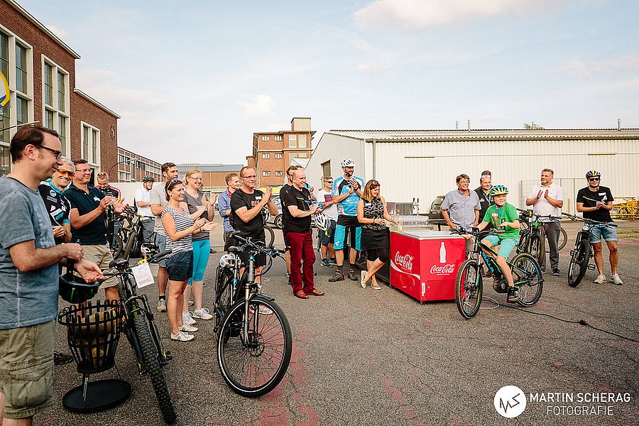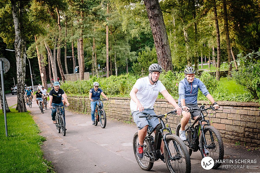 Bereits im Mai hatte die Mannschaft eine teaminterne E-Bike-Tour durch Köln absolviert und dort großen Gefallen daran gefunden. Am Lager des Zweirad Center Prumbaum in Dellbrück startete die ca. 35 Kilometer lange Tour durch Köln.