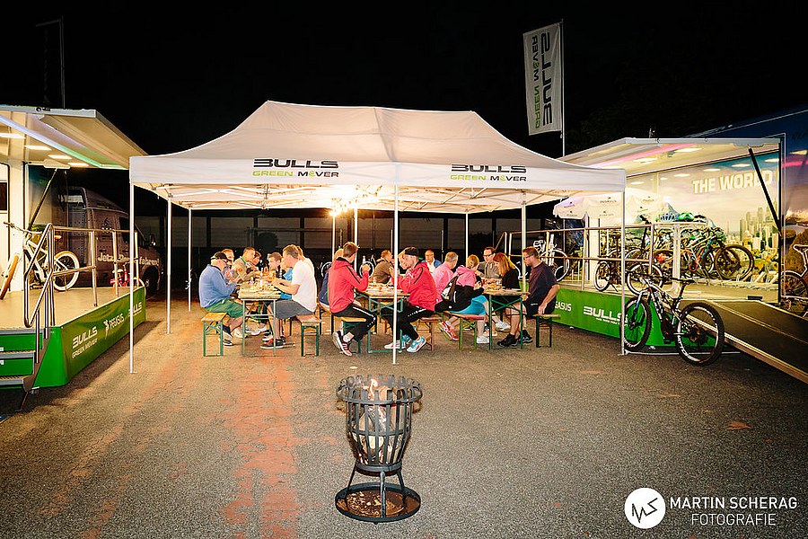 Dabei gab es für die Beteiligten die Möglichkeit, alle Modelle der Marke "Bulls" zu testen. Zwischendurch wurden die Fahrer mit einer Getränkestation versorgt. Nach der langen Tour fand der Tag bei einem gemeinsamen Grillen und Networking am Startpunkt in Dellbrück einen gemütlichen Ausklang.
