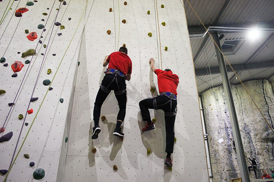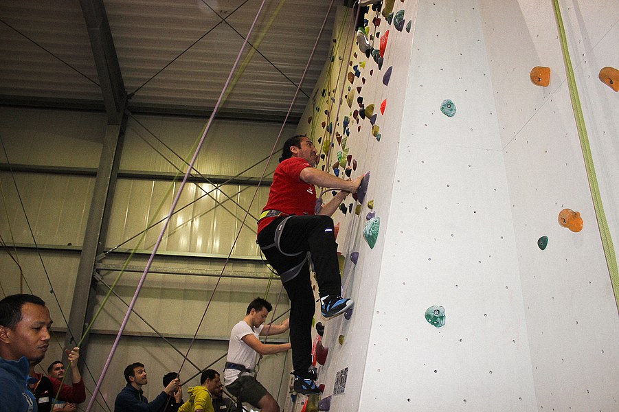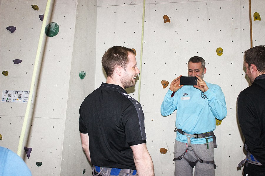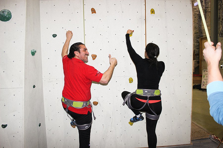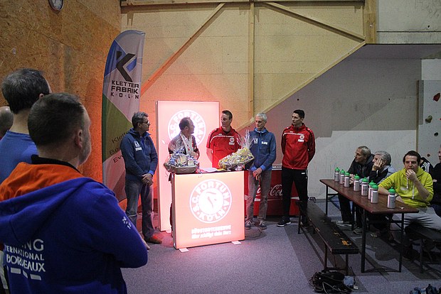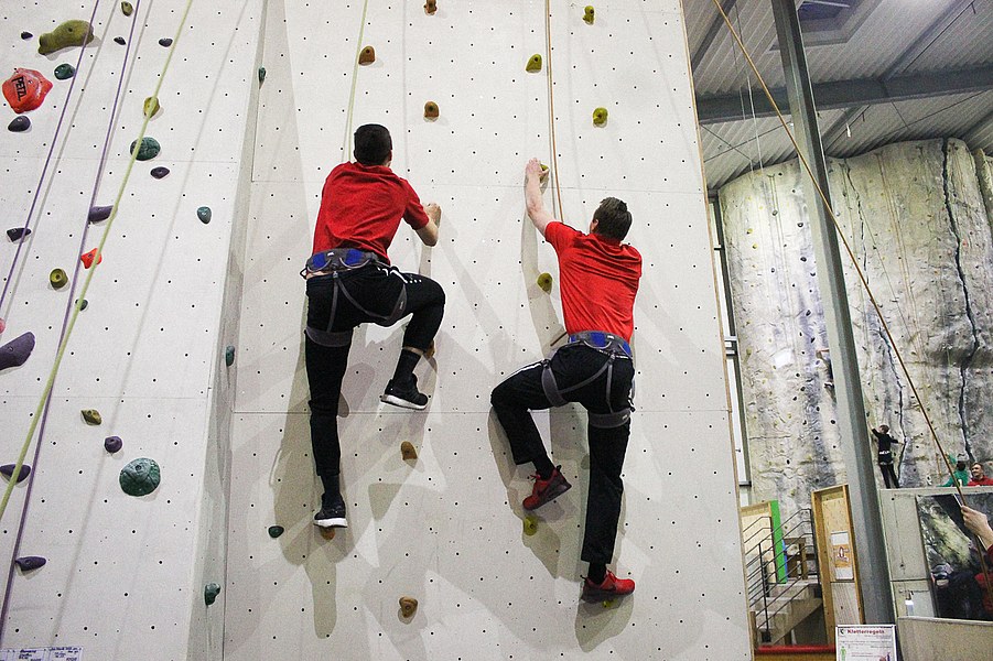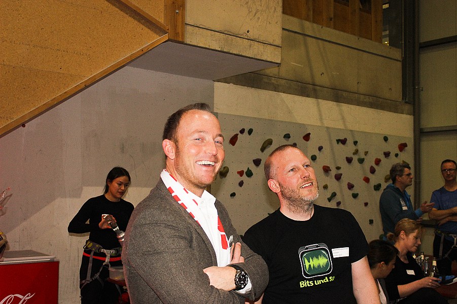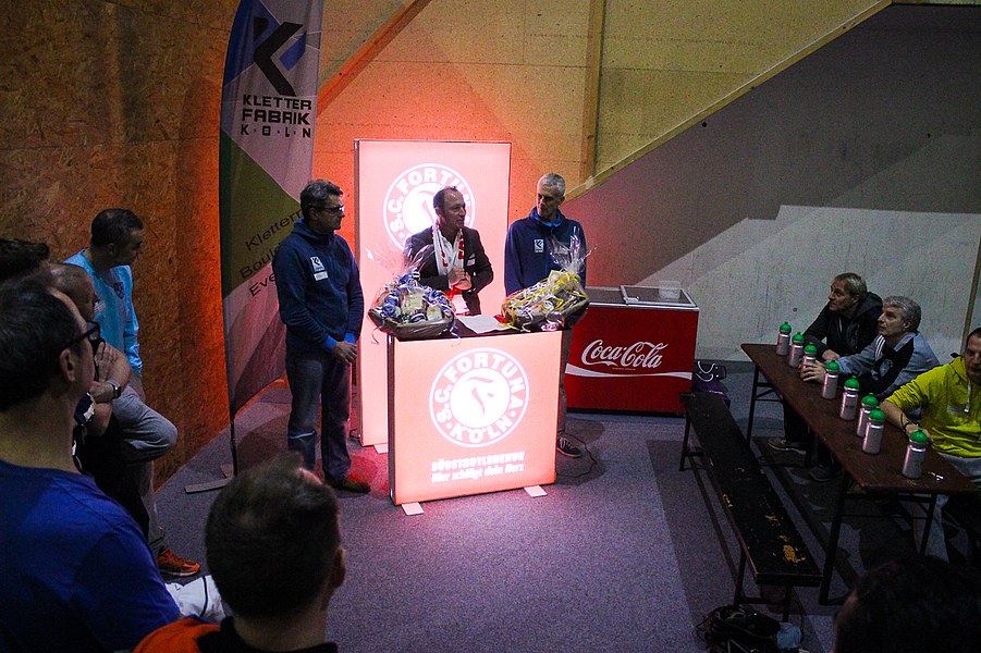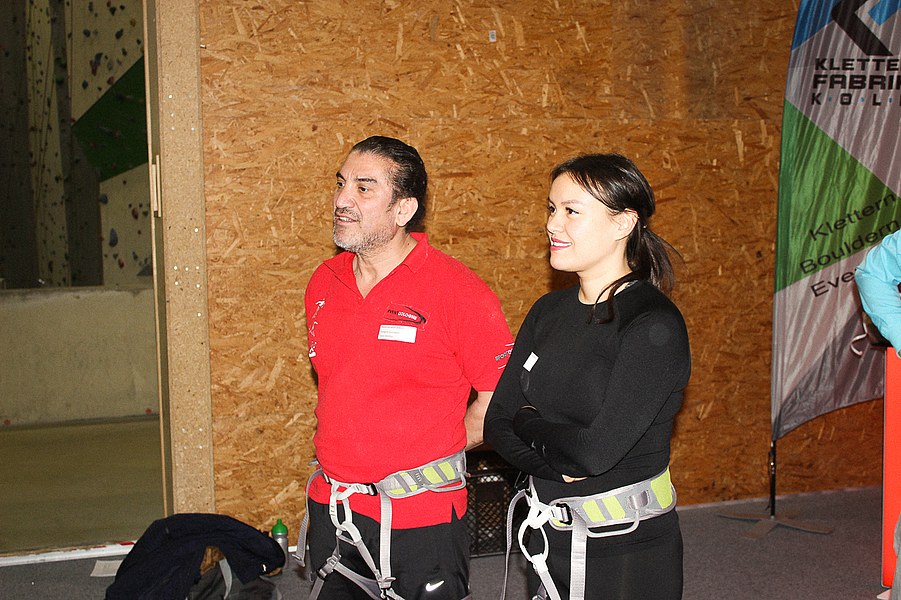 Frank Blaeser und Gregor Jaeger von der Kletterfabrik Köln eröffneten dabei zusammen mit Benjamin Bruns die Veranstaltung und stellten die Kletterfabrik Köln in Ehrenfeld dem Fortuna-Netzwerk näher vor. Anschließend wurde es sportlich: Nach einer kurzen Einweisung vom Team der Kletterfabrik konnten sich die Fortuna-Partner sowie die beiden Profis Markus Pazurek und Christoph Menz ausprobieren. Während einige für sich Wände hoch klettern, probierten sich andere im Speedklettern. Im Eins gegen Eins ging es darum, wer am schnellsten die Wand hoch klettert und auf einen Buzzer drückt. Auch Pazurek und Menz duellierten sich dabei. Das Netzwerk der Fortuna hatte sichtlich Spaß. Einige Partner versuchten sich schließlich sogar noch an einer 17 m großen Kletterwand. Zur Stärkung gab es anschließend Getränke und Verpflegung von der Kletterfabrik sowie den Fortuna-Partnern Coca-Cola, der Privatbrauerei Gaffel und Dauner & Dunarius Heilquellen. So lies man den Abend im familiären Rahmen anschließend ausklingen.