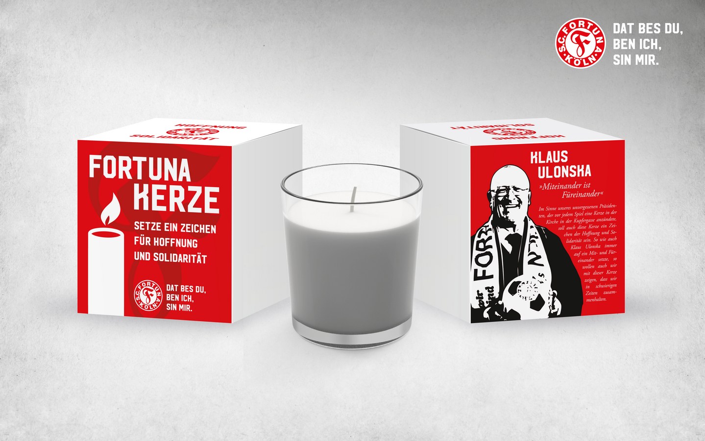 Im Sinne des unvergessenen Ehrenpräsidenten Klaus Ulonska, der vor jedem Spiel eine Kerze in der Kirche in der Kupfergasse anzündete, soll auch diese Kerze ein Zeichen der Hoffnung und Solidarität sein. So wie auch Klaus Ulonska immer auf ein Miteinander ist Füreinander setzte, so will auch die Fortuna mit dieser Kerze zeigen, dass sie in herausfordernden Zeiten zusammensteht.