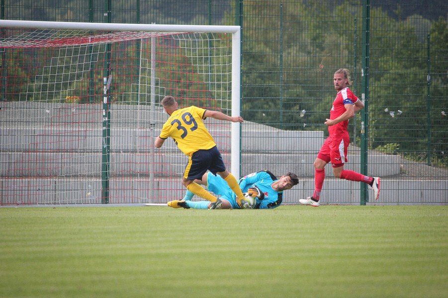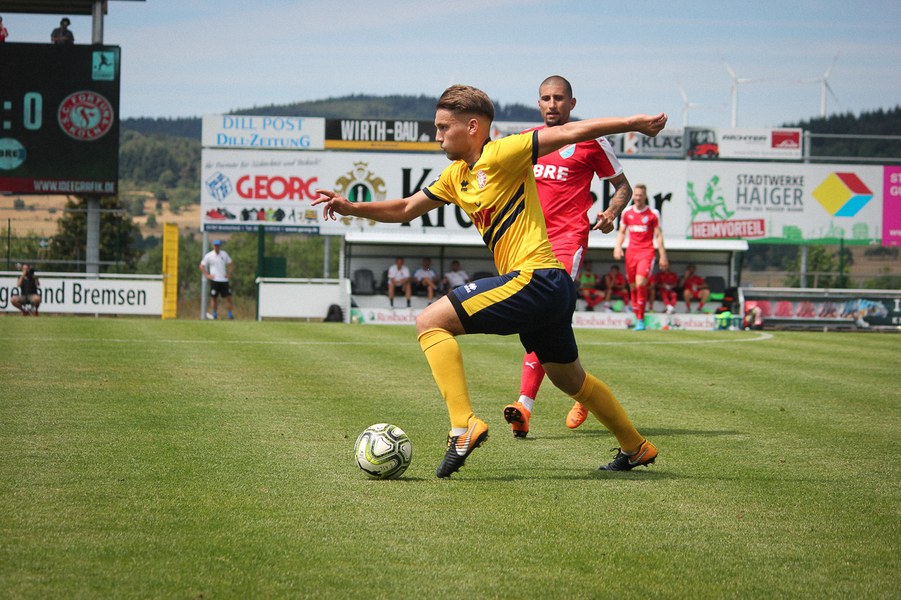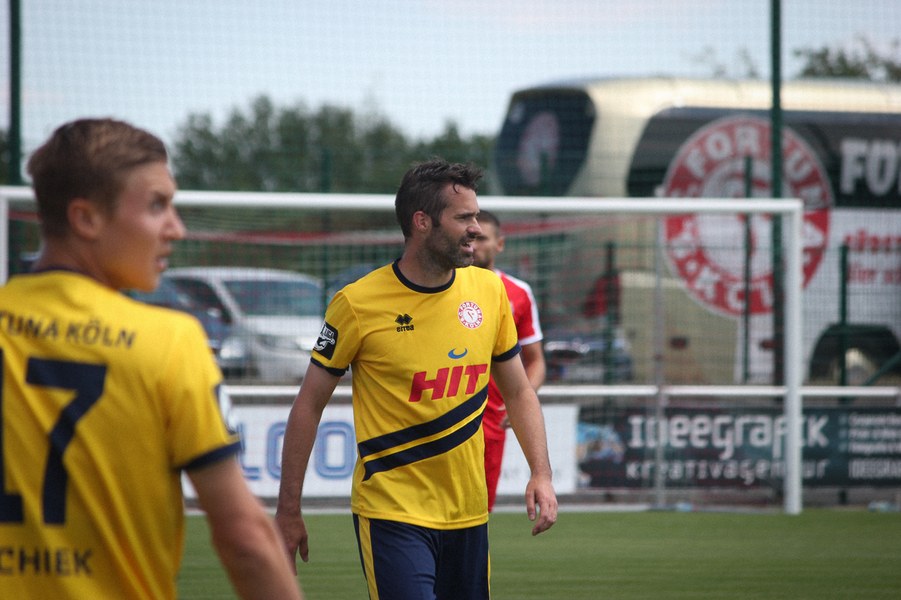In einem lebendigen Test gingen beide Teams direkt ein hohes Tempo und schenkten sich speziell in der Defensive wenig. So entwickelte sich ein munteres, aber chancenarmes Spiel. Die Fortuna übernahm nach einem kurzen Abtasten die Kontrolle und verlagerte das Spielgeschehen in Steinbachs Hälfte. Zwar gelang offensiv nicht alles, aber bei Ballverlust holten sich die Südstädter das Spielgerät direkt wieder und hielten den Druck so hoch. Steinbach sorgte lediglich bei Kontern über Marquet mal für Entlastung. Bis auf zwei Ecken sprang für die Fortuna aus der Dominanz offensiv aber zunächst nichts heraus. Die dritte Ecke der Fortuna sollte dann erstmals einen Hauch von Torgefahr versprühen, auch wenn kein Kölner die Unordnung von Steinbach im Fünfmeterraum ausnutzen konnte (31.). Der Drittligist war bemüht und zeigte speziell über links die reifere Spielanlage. Es war jedoch eine Einzelaktion, die die einzige echte Torchance sein sollte: Aus 25 Metern zimmerte Kurt den Ball am reaktionslosen Bibleka an den Querbalken von Steinbachs Gehäuse (37.). Nachdem kurz darauf eine vielversprechende Hereingabe von Bröker durch den Strafraum flog (43.), ging es schließlich torlos in die Kabine.