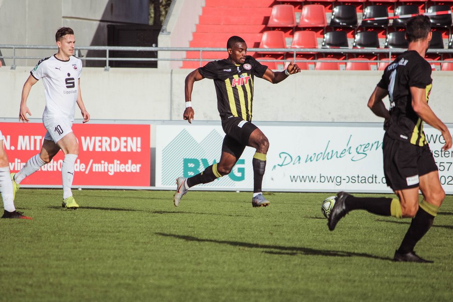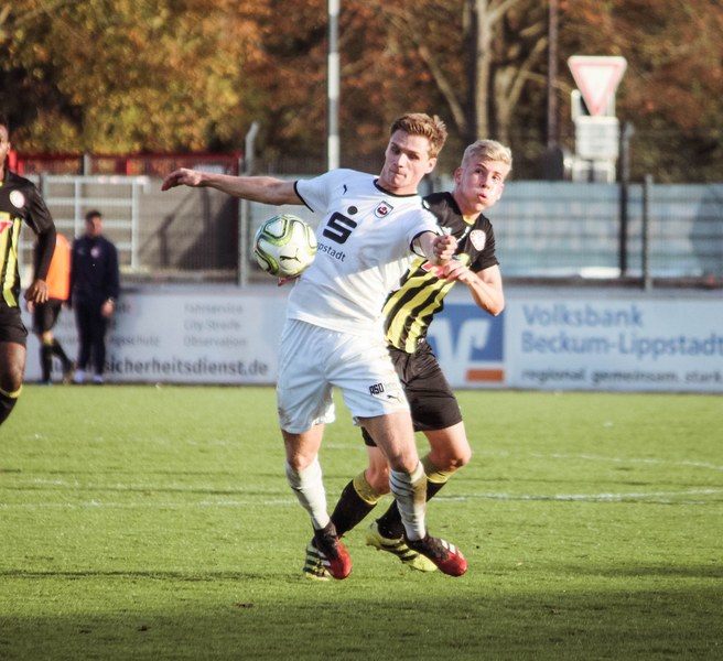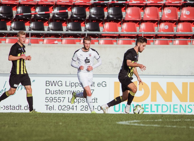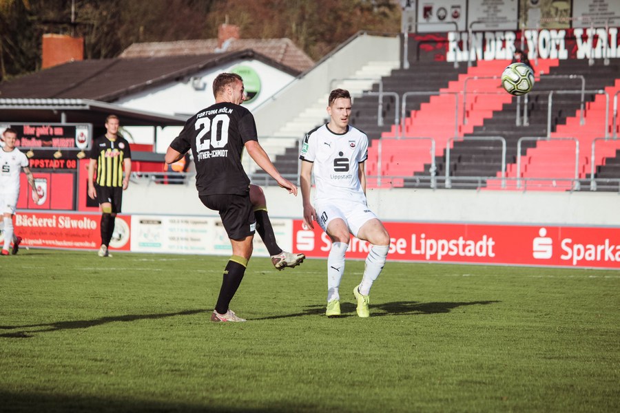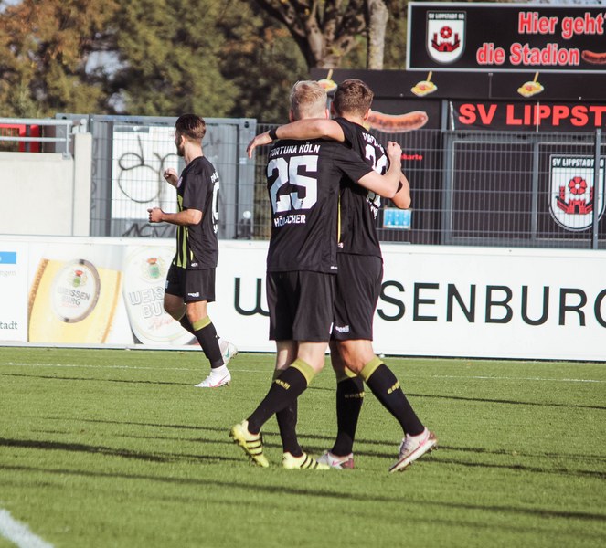 Nachdem die Fortuna in den vergangenen Spielen oftmals einen Rückstand hinnehmen musste, erwischte das Team von Alexander Ende diesmal einen besseren Start. Mail Kegel verlagerte mit einem sauberen Pass das Spiel und nahm Nico Ochojski mit. Der Abwehrmann hatte mit seiner Flanke den Blick für Hamza Salman, der im Strafraum mit dem Kopf noch einmal auf Günther-Schmidt ablegte. Fortunas Nummer 20 nahm den Ball volley und traf ins lange Eck zur 1:0-Führung (6.). Fortunas Motoren waren auf Angriff gestellt, doch sowohl Hölscher und Ubabuike (13.) als auch Ubabuike im Verbund mit Günther-Schmidt (16.) brachten den Ball zunächst nicht gefährlich auf das Tor. Anders sah dies nach 18 gespielten Minuten aus. Prokophs abgeblockter Schuss landete vor den Füßen von Günther-Schmidt, der nochmal einen Haken schlug und den Ball mit einem satten Schuss auf das Tor brachte. Lippstadt klärte jedoch in höchster Not zur Ecke. Danach wurde das Spiel etwas zerfahrener. Fortuna bliebt zwar spielbestimmend, ließ den Gegner aber durch einige Unsauberkeiten bis vor das Tor von Rauhut vordringen. Aber auch in dieser Phase fand die Fortuna die richtige Antwort. Poggenberg schaltete sich in der Offensive ein und brachte von links eine Flanke scharf vor das Tor. Salman verpasste in der Mitte mit dem Kopf, so landete der Ball aber direkt auf dem Fuß von Roman Prokoph, der das Spielberät unter die Latte setzte (31.). Dann wurde es brenzlich vor dem Tor von Kevin Rauhut. Poggenberg klärte in höchster Not und der Ball landete vor den Füßen von Prokoph. Der Gegenspieler des Stürmers ging zu Boden und der Schiedsrichter zeigte auf den Punkt. Nachdem der Gastgeber im Gespräch erklärte, dass Prokoph den Ball spielte, nahm der Schiedsrichter seine Entscheidung wieder zurück (39.). Ein großes Zeichen im Sinne des Fair Plays! Kurz vor der Pause probierte es die Fortuna dann noch einmal mit einem langen Ball auf Ubabuike. Der schnelle Fortune hielt zwar die Fußspitze rein, kam aber nicht mehr vor Keeper Balkenhoff an den Ball (45.). So ging es mit der 2:0-Führung in die Pause.