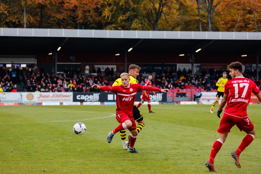 Fortuna Köln traf am heutigen Sonntag auf die U 23 von Borussia Dortmund. Das Spiel war nicht nur das letzte Heimspiel der Hinrunde, sondern auch ein Wiedersehen der Kölner mit Verteidiger Steven Ruprecht, der bis zum vergangenen Sommer das rot-weiße Trikot trug. Im Vergleich zum letzten Spiel gegen TuS Haltern blieb, das Team von Trainer Thomas Stratos unverändert.