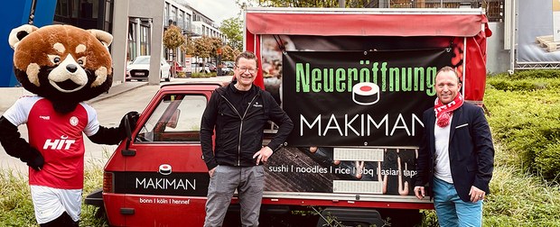 Geschäftsführer Benjamin Bruns heißt MAKIMAN bei der Fortuna willkommen: Mit MAKIMAN begrüßen wir einen neuen Partner in der Fortuna-Familie, der ebenfalls in der Kölner Südstadt ansässig ist. Wir freuen uns, mit der Sushi-Kette MAKIMAN einen Partner an unserer Seite zu haben, der mit seinen asiatischen Spezialitäten das Fortuna-Netzwerk erweitert und Wert auf gesunde Ernährung mit hoher Qualität legt.“