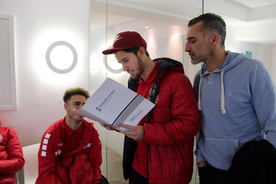 Los ging die Ärzte-Tour der Fortuna am Südstadion. Mit dem Mannschaftsbus hieß der erste Halt Jungersdorf. Trainerteam und Mannschaft besuchten dort die Räumlichkeiten von Dr. Jens Enneper und seiner Praxis Othopädie und Sport. Dr. Jens Enneper gründete die Praxis 2010 und gab mit der Nähe zur Deutschen Sporthochschule gleich die Richtung an, in die es gehen sollte. Mit seinem Team deckt er das gesamte othopädische Leistungsspektrum ab und richtet den Blick auf den sportmedizinischen Schwerpunkt. Als Teil des Teams hinter dem Team stellt er die Diagnose und leitet weitere Schritte der Behandlung ein.