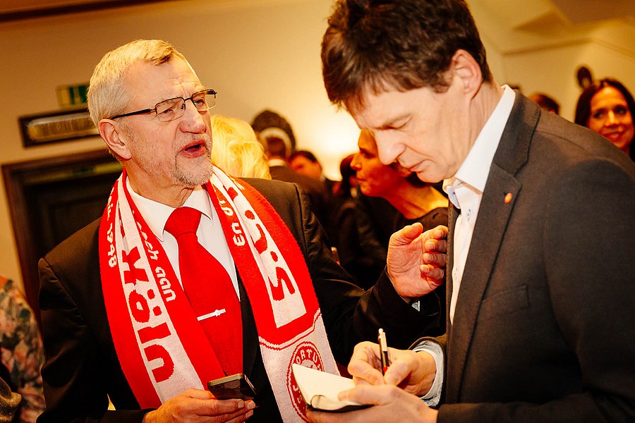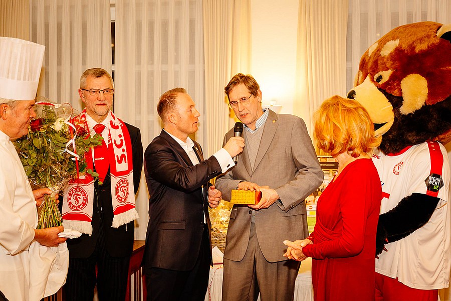 Des Weiteren blickte Michael W. Schwetje, Geschäftsführer der Fortuna Köln Spielbetriebsgesellschaft auf die wirtschaftliche und sportliche Entwicklung. Fortuna-Trainer Uwe Koschinat schaute schließlich auf die sportlichen Aufgaben voraus. Am kommenden Samstag steht hier mit dem Heimspiel gegen den 1. FC Magdeburg der Rückrundenauftakt in die 3. Liga an. „Diese Veranstaltung soll die Fortuna-Familie in besonderem Ambiente einschwören auf das anstehende Jahr. Im letzten Jahr haben wir mit Erhard Schäfer 100 Leute begrüßen können, diesmal waren es 150. Man sieht auch hier, wie sich das Netzwerk entwickelt und weiter zusammen wächst. Ein großer Dank gilt Erhard Schäfer und dem gesamten Team vom Landhaus Kuckuck für diesen besonderen Abend“, zeigte sich Benjamin Bruns, Leiter Sponsoring & Vertrieb, mit der Veranstaltung zufrieden.