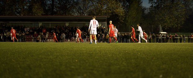 Der erste Durchgang lief alles andere als nach Plan für die favorisierten Gäste. Zum einen war der giftige Verbandsligist FC Hürth auf dem stumpfen Kunstrasen sehr schwierig zu bespielen, zum anderen ging der Gastgeber in der 28. Minute in Führung. Alexander Gaun behauptete an der Mittellinie den Ball, spielte auf Fabian Djemail, der sich gegen Nadjombe durchsetzen konnte und auf den durchgestarteten Gaun weiterspielte. Der Außenverteidiger ging mit viel Mut in den Strafraum und an Rumpf vorbei. Aus sehr spitzem Winkel spitzelte Gaun letztendlich den Ball an Weis vorbei und über die Linie. Vor der Halbzeit schaffte es Fortuna Köln dann nicht mehr für wirklich gefährliche Strafraumaktionen zu sorgen.