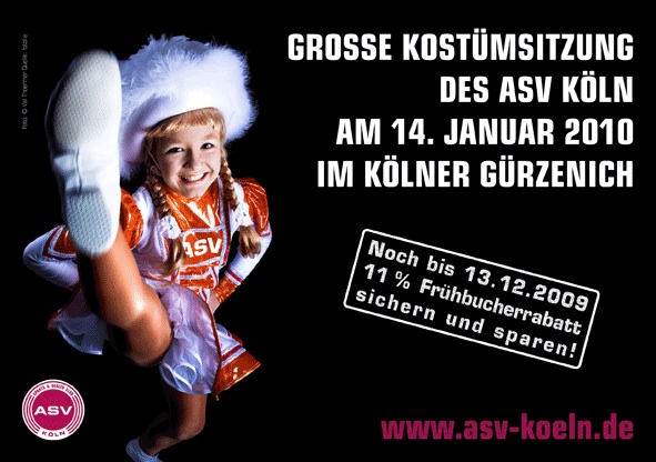 Am 14.01.2010 feiert der ASV Köln, Kooperationspartner der Fortuna Köln Spielbetriebsgesellschaft mbH, im traditionsreichen Kölner Gürzenich seine Große Kostümsitzung. Auf der Bühne stehen unter anderem die Höhner, Paveier, de Räuber, ne Werbefachmann, Dreigestirn, dä Blötschkopp, ne Knallkopp, die Cöllner, Luftflotte, die Rheinländer - und davor der Saal auf den Stühlen.