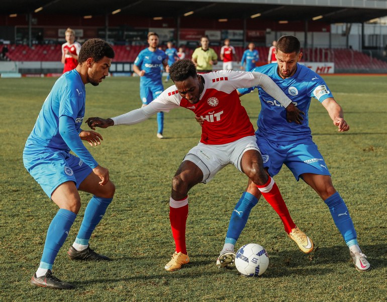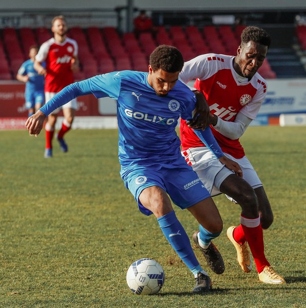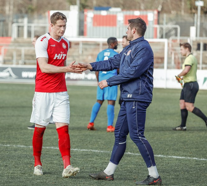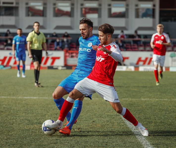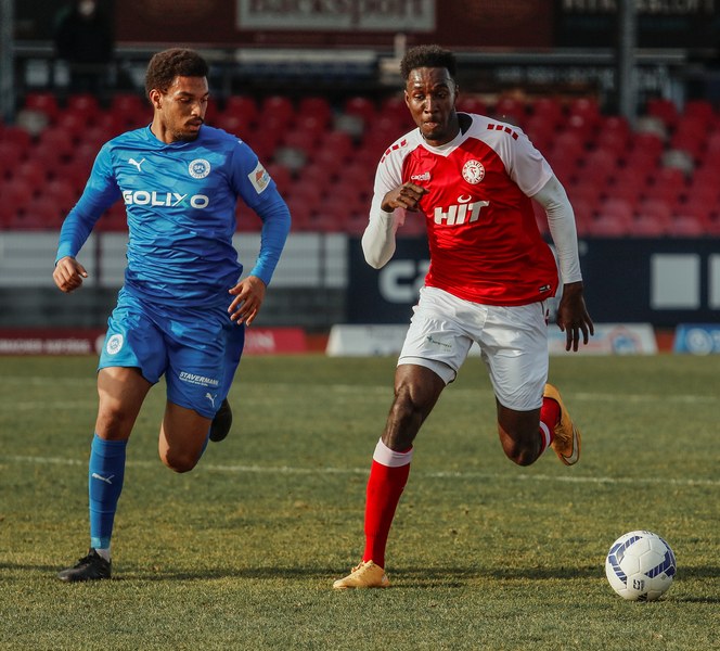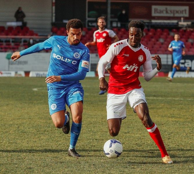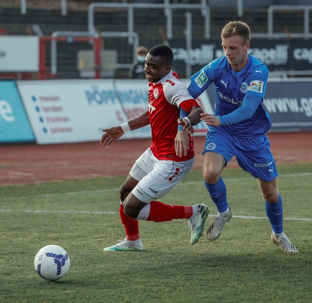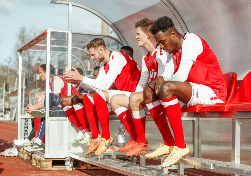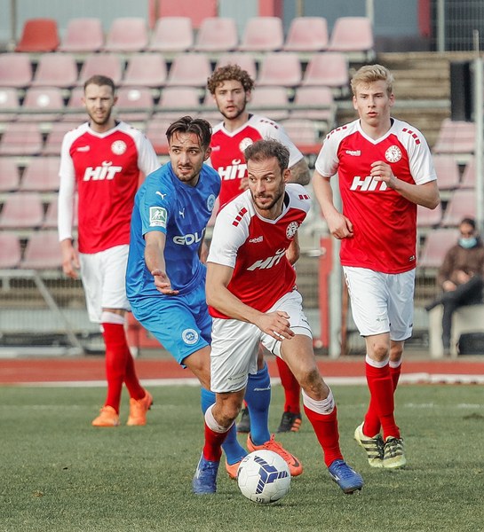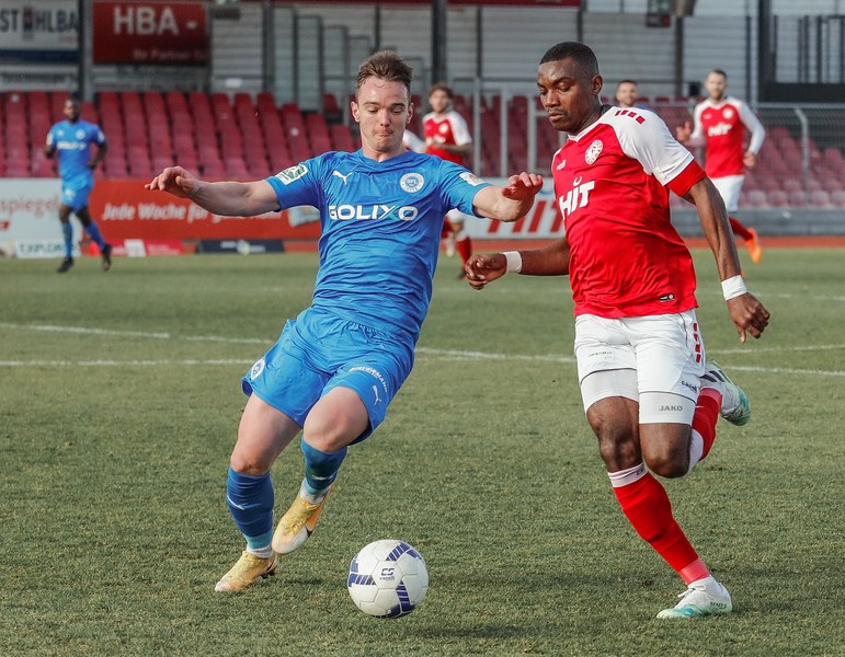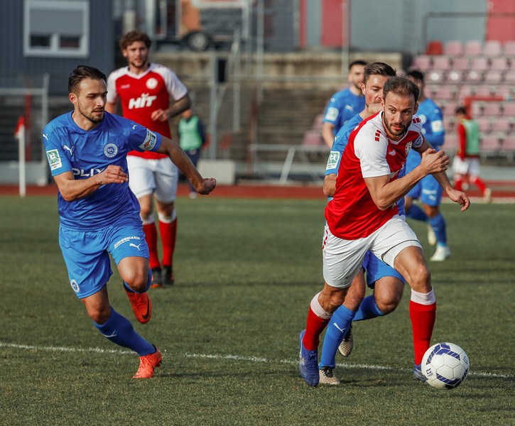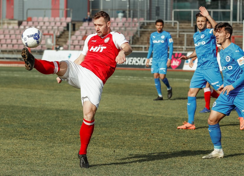Die Gäste versuchten schon zu Beginn das Spiel der Südstädter früh zu stören und setzten das heutige Innenverteidigerduo, bestehend aus Löhden und Rumpf, bereits bei der Ballannahme unter Druck und wollten die Beiden dadurch zu Fehlern zwingen. Rumpf startete unglücklich in die Partie und verlor in der Vorwärtsbewegung den Ball. Itter kam in der Folge zu spät und konnte den vorangegangenen individuellen Fehler nicht mehr ausbügeln. Der Lotter Spielführer konnte aus der Situation nichts erfolgsbringendes machen und verfehlte das Tor deutlich (3. Min.). So gibt es Abstoß für Fortuna. Die erste Viertelstunde war in Sachen Torraumszenen sehr ereignisarm. Das frühe Anlaufverhalten beider Teams, brachte beide Mannschaften dazu, das Spiel über die Abwehrreihen zu fokussieren und das Spiel in die Breite ziehen zu wollen. Bälle in die Tiefe sind nur all zu selten. Nach 17 gespielten Minuten gab der Gast den ersten Schuss ab. Drilon Demaj kam über die rechte Seite der Gäste zum Abschluss, setzte den Ball jedoch einige Meter rechts am Kasten von Rauhut vorbei. Quasi im Gegenzug kam die Fortuna zu ihrem ersten Torabschluss und dieser landete direkt im Tor von Gästetorhüter Peitzmeier. Roman Prokoph schirmte zunächst kurz vor dem Sechzehner bärenstark den Ball gegen den Innenverteidiger der Gäste ab und legte dann den Ball auf Maik Kegel ab. Dieser sah den in den freien Raum starteten Najar und schickte ihn auf die Reise. Najar blieb vor dem Tor eiskalt und versenkte den Ball rechts an Peitzmeier vorbei zum umjubelten 1:0 Führungstreffer (18.Minute). Fortan nahm das Spiel an Fahrt auf und der Ball durchquerte nun öfter beide Strafräume. Eine gefährlich herausgespielte Aktion konnte in der 28. Minute Dan-Patrick Poggenberg verhindern, indem er seinen Fuß dazwischen hielt und somit das fast sichere 1:1 abwehrte. Nach 35 Minuten kam es noch einmal zu einer Chance für die Fortuna. Timo Hölscher setzte im Mittelfeld nach einem Ballverlust gut nach und eroberte den Ball postwendend zurück. Auf der linken Außenbahn sah er dann den freien Francis Ubabuike welcher sich zunächst gut durchsetzte und per Flanke den Ball zurück auf Hölscher brachte. Hölscher bekam jedoch nicht genügend Druck hinter den Ball und köpfte dem Gästekeeper in die Arme. Die Halbzeit nutzte Trainer Alexander Ende für gleich drei Wechsel. Owusu kam für Salman, Ochojski ersetzte Itter und Lanius betrat für Kegel den Platz, ordnete sich allerdings in die Viererkette ein, so dass Rumpf auf die Position von Kegel vorrückte. Poggenberg drang über die linke Seite in die gefährliche Zone der Gäste und holte mit seinem Vorstoß die erste Ecke für Fortuna Köln heraus. Die von Najar ausgeführte Ecke brachte Gefahr mit sich. Lanius köpfte den Ball in Richtung oberes, linkes Toreck, wo Owusu zwar bereitstand, aber nicht mehr an den Ball drankam. Die Situation wurde aber sofort abgepfiffen, da Owusu dem Torwart die Sicht nahm und sich somit im passiven Abseits befand. Eine vielversprechende Möglichkeit gab es für die Fortuna dann in Form einer Doppelchance. Erst setzt sich Ubabuike gut durch und suchte dann den Abschluss, Peitzmeier pariert den Ball, der auf den Torwart platziert war, aber der Ball fiel anschließend Torschütze Najar vor die Füße, dessen Nachschuss er ebenfalls abwehren konnte, ehe die Gäste den Ball aus der Gefahrenzone entfernen konnten. (54.) Die Gäste aus Lotte kamen immer wieder zu nennenswerten Offensivaktionen, die nicht immer von der Fortuna geklärt werden konnte. So spielte sich Lotte in der 56. Minute um den Kölner Sechzehner, wo Demaj erneut zum Abschluss kam, Rauhut aber rechtzeitig zur Ecke abwehrte. Ochojski köpfte anschließend den Ball hinter heraus, aber an der Strafraumkante wird in aussichtsreicher Position ein Freistoß verursacht. Dieser wurde gefühlvoll in die untere linke Ecke platziert, aber Rauhut zeigt eine unglaublich starke Parade und wehrt den Ball zur Ecke ab. Bei der Aktion verletze sich der Fortuna Torhüter und musste nach einer kurzen Behandlung doch verletzt ausgewechselt werden. Schünemann stellte sich für ihn zwischen die Pfosten und ersetze ihn für die restliche Spielzeit. In der 65. Minute passierte dann das, was sich in den vorangegangenen Minuten bereits abgezeichnet hatte. Lotte wurde in ihrem Angriffsspiel nicht entscheidend genug angegriffen, was dazu führte, dass der stark aufspielende Demaj vor Schünemann zum Abschluss kam und den Ball gekonnt an ihm vorbeischob. Auf den erzielten Ausgleichstreffer hatte die Fortuna dann aber die richtige Reaktion gezeigt. Ochojski zeigte Entschlossenheit, als er sich ein Herz fasste und zum Dribbling ansetze, bevor er den Ball an Hölscher übergab. Der spielte den Ball auf die linke Außenbahn zu Ubabuike, der mittels einer flachen Hereingabe Prokoph in Szene setze. Der schön vorgeführte Angriff wurde nicht mit einem Tor belohnt. Aber die Fortuna setzte nach und wollte die Führung wieder herstellen. Najar wurde im gegnerischen Strafraum freigespielt, zögerte nicht lange und zog ab. Sein Schuss wird erst noch abgeblockt, wodurch sich die Flugrichtung des Balles noch undankbar für den gegnerischen Torwart verändert. So hüpfte der Ball in das rechte Eck des Lotter Kastens und Najar schnürte seinen Doppelpack. Die Sportfreunde aus Lotte wollten unbedingt einen Punkt aus der Kölner Südstadt mitnehmen, das war ihrer Bemühungen deutlich anzumerken. In der 79. Minute rettete dann der Pfosten für die Fortuna. Schünemann musste beinahe wieder hinter sich greifen, aber der Pfosten half ihm dabei, dass der Ausgleich zunächst noch verhindert werden konnte. Das Spiel wurde jetzt immer spannender und packender. Najar hatte sogar noch die Möglichkeit einen Hattrick zu erzielen. Zuvor hatte Owusu einen wichtigen Kopfball an der Mittellinie gewonnen, womit er Najar in den Lauf vorlegte. Der Torschütze sprintete auf das Tor zu und schloss kurz vor dem Tor selber ab, aber visierte dabei den ge