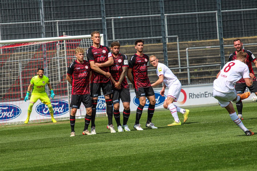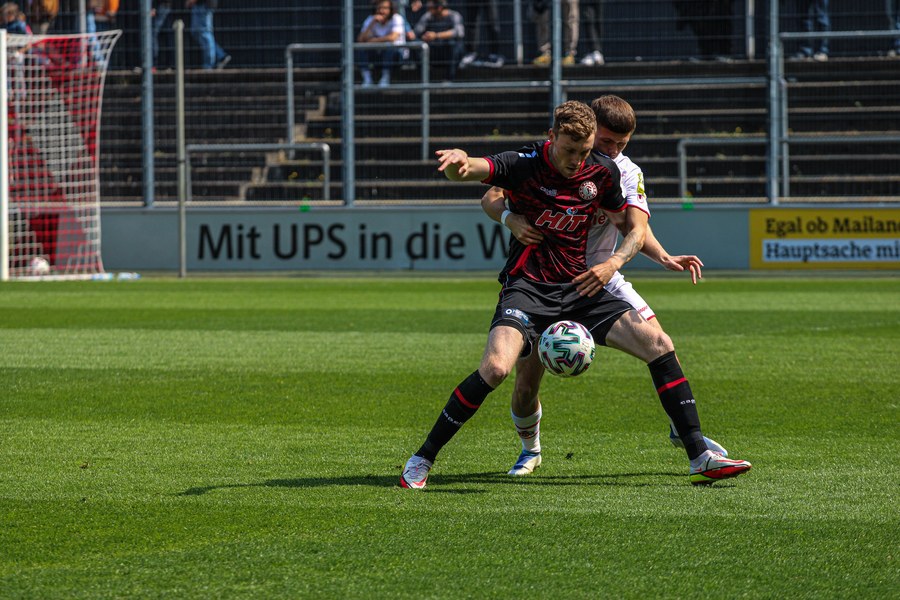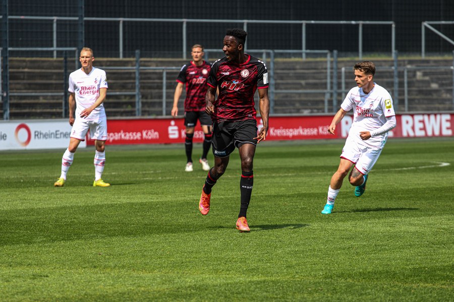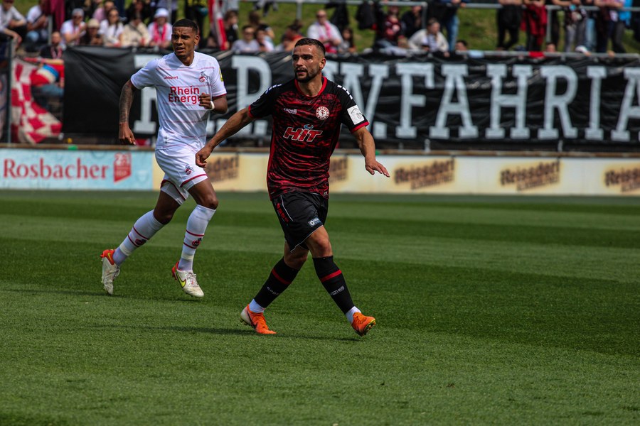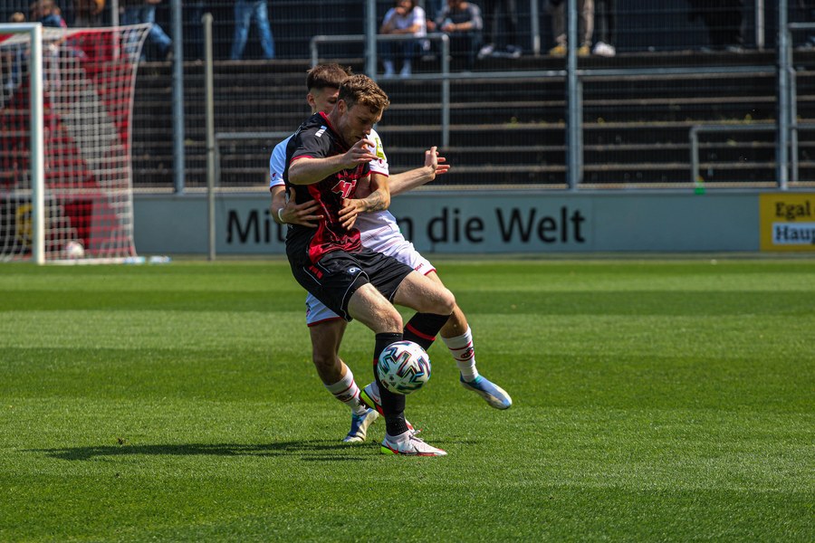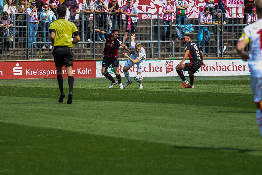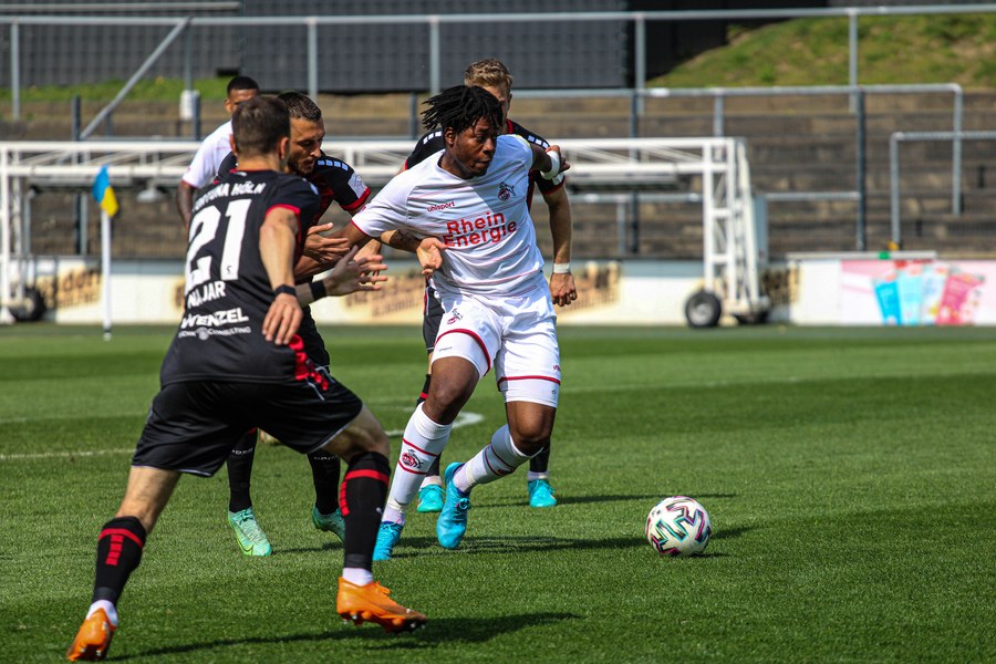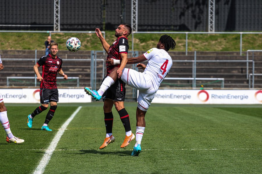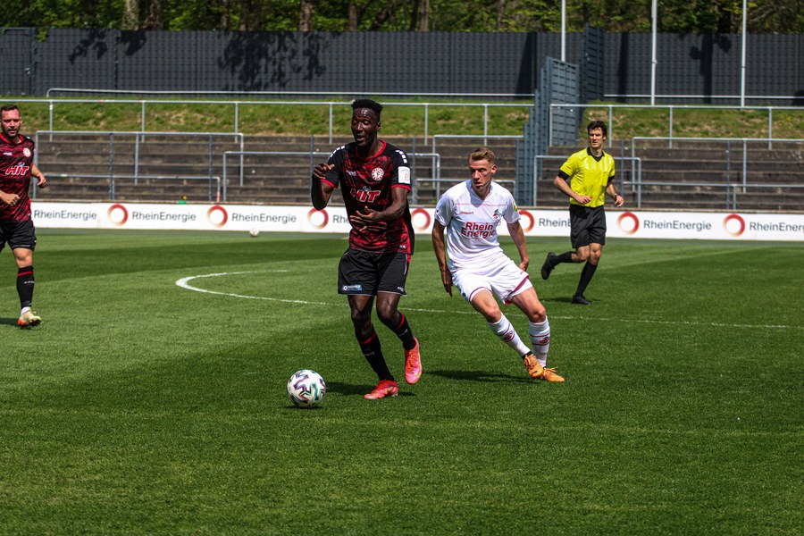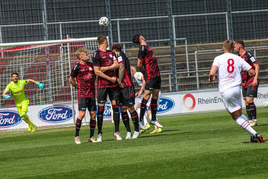 Die Fortuna ging ohne einen weiteren Wechsel in den zweiten Durchgang und machte dort weiter, wo sie vor dem Halbzeitpfiff aufgehört hatten. So hätten sie unmittelbar nach Wiederbeginn die Führung ausbauen können. Über die rechte Seite arbeiteten sich die Fortunen nach vorne. Mike Owusu legte den Ball auf den in der Mitte stehenden Sascha Marquet ab. Dieser schoss den Ball flach ins Tor, doch sein Treffer wurde als Abseitstor gewertet. Auch weiterhin blieb die Partie spannend. Immer wieder kam die Fortuna zu Abschlüssen, doch für ein weiteres Tor reichte es zunächst nicht. In der 61. Minute steckte Maik Kegel, nach einem Pass von Jannik Löhden, den Ball auf Sascha Marquet durch. Er drang hinter die Abwehr der Geißböcke und ließ Jonas Urbing mit seinem Torschuss keine Chance. Doch für den FC war das Spiel noch nicht gegessen und sie bauten immer weiter viel Druck auf die Fortunaspieler auf. Nach einer Ecke wurde der Ball zunächst von den Südstädter entschärft blieb jedoch in den Reihen des FC. David Winke traf mit seinem Schuss aus der Distanz den Pfosten. Hendrik Mittestädt konnte das abgeprallte Spielgerät verwerten und verkürzte auf 1:2 (67.Min). Knapp zehn Minuten später kamen die Geißböcke dem Tor der Fortuna wieder sehr nahe. Nach einer Flanke bekam Mittelstädt den Ball von Ricardo-Oliver Henning quer gelegt und erzielte den Ausgleichstreffer. Kurz darauf versuchte die Fortuna nach einem starken Spielzug von Najar und Batarilo nachzulegen, doch Demaj verfehlte das Tor, nach dem Zuspiel, denkbar knapp. Der Fortuna gelang es trotz vieler Versuche in den letzten Minuten nicht mehr, den vermeintlichen Siegestreffer im Stadtduell zu erzielen.