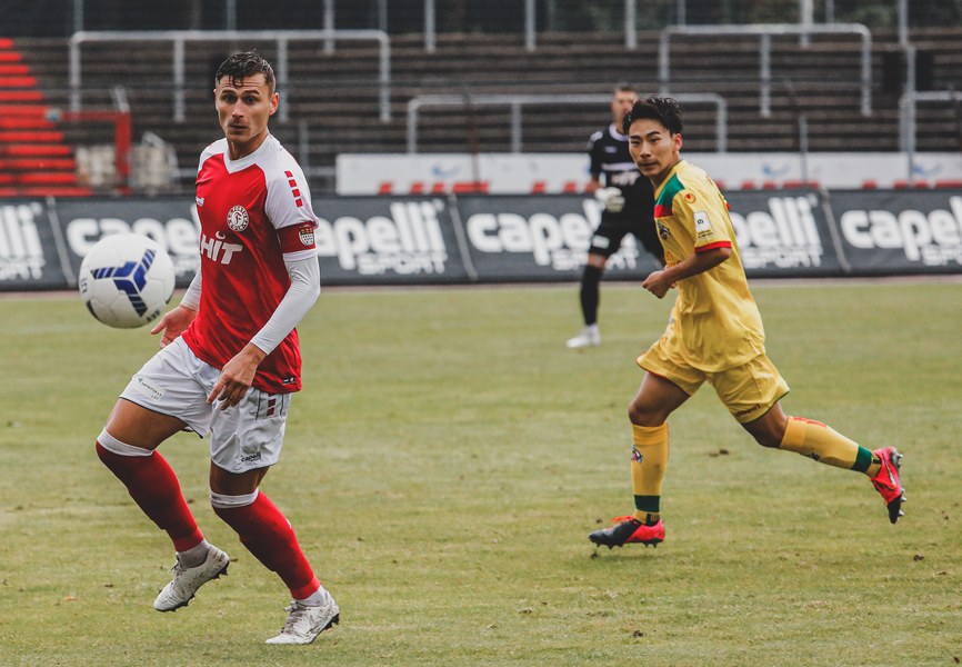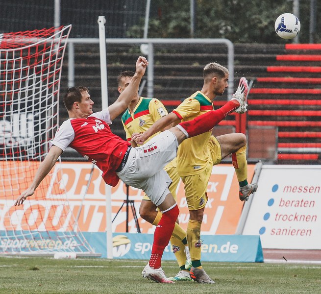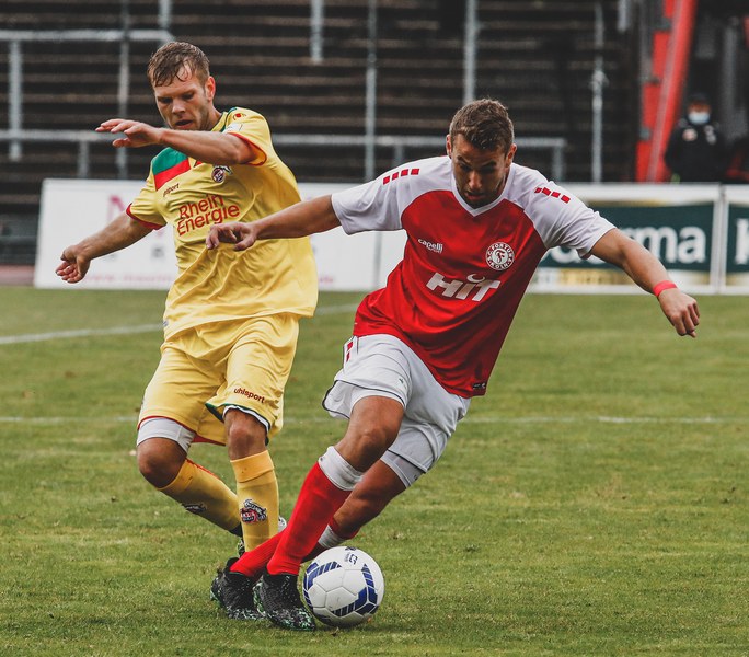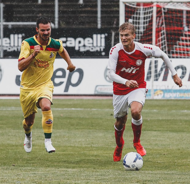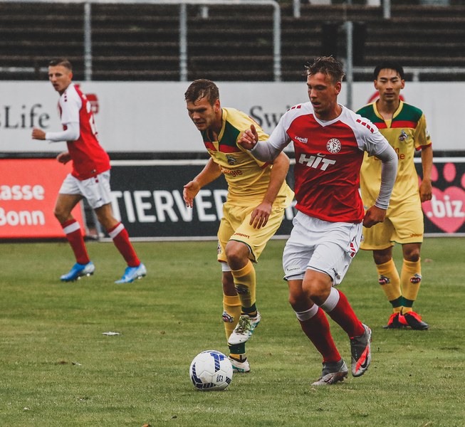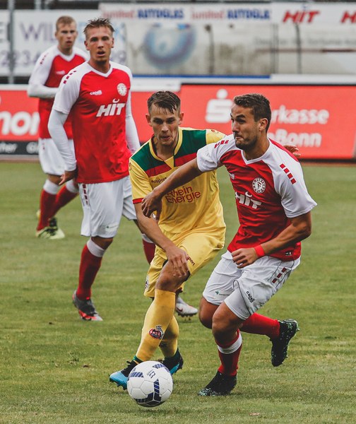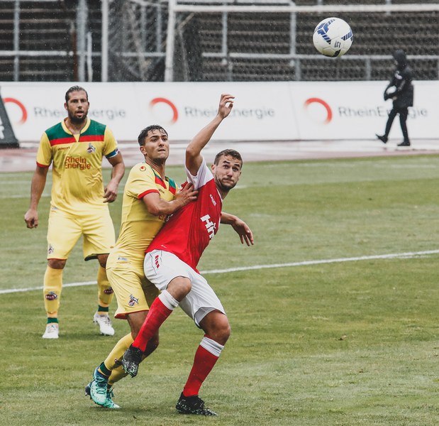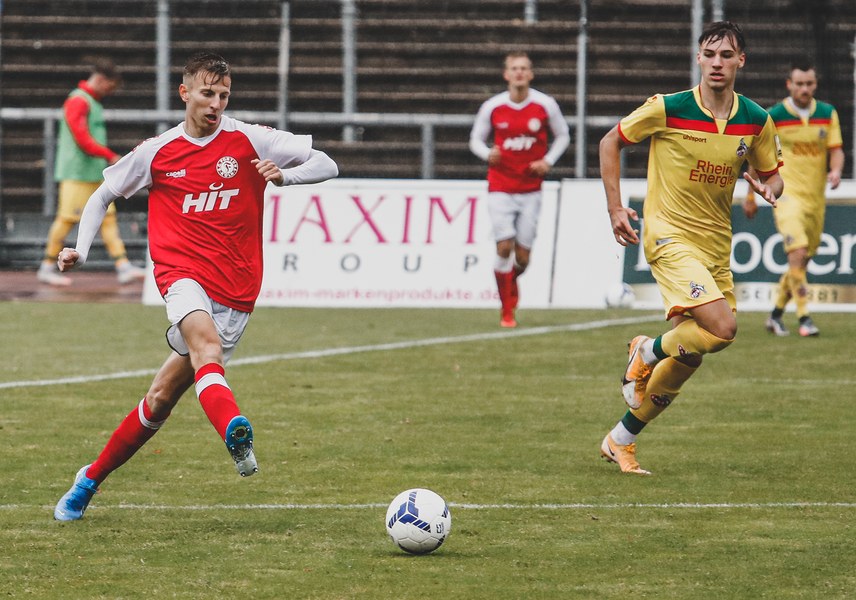 Die zweite Halbzeit startete so, wie die erste endete - nämlich mit Chancen für die Fortuna. Gleich zu Beginn fand Hamza Salman den Abschluss, traf allerdings nur weit über das Tor. In der 47. Minute scheiterte Ubabuike aus kurzer Distanz an Krahl. Quasi im Gegenzug konterte der FC über Christian Clemens, aber der Ball fliegt knapp am Tor vorbei. In der 48. Minute folgte dann eine schöne Kombination über Owusu, Brandenburger, Hölscher, die in Ubabuike seinen Abnehmer fand. Krahl konntrollierte jedoch erneut im Nachfassen den Ball. Owusu drängte in Richtung des gegnerischen Tores und konnte nur durch ein Foul gestoppt werden. Den fälligen Freistoß brachte der Kapitän Franko Uzelac flach vor das Tor des FC, wo Nico Brandenburger die Hereingabe nur um wenige Zentimeter verpasste (48.). Die folgenden Minuten waren geprägt von einigen Ballverlusten im Mittelfeld auf beiden Seiten und brachten so wenige klare Torchancen. In der 54. Minute wurde es dann laut im Südstadion. Francis Ubabuike kam bis zur Torauslinie und spielte den Ball halbhoch in den 5er. Die Fans unter den 930 Teilnehmern im Südstadion forderten einen klaren Handelfmeter, jedoch entschied sich der Schiedsrichter für einen Eckball, welcher allerdings für keine weitere Gefahr sorgen konnte. In der Folge ging es dann richtig schnell auf beiden Seiten. So brachten die Gäste in der 56. Minute den Ball auf den freistehenden Voloder, wessen Direktabnahme im Toraus landete. Auf der anderen Seite brach Julian Günther-Schmidt bis zur Torauslinie durch und legte den Ball quer, doch der Kölner Keeper fing den Ball ab. Nach 59 Minuten war es erneut Günther-Schmidt der bis zur Torauslinie gelang und dann auf den diesmal im 5er stehenden Salman querlegte. Salman schloss zentral ab und brachte den Ball im Tor der Gäste zur verdienten Führung unter. In der 63. Minute wurde es dann laut im Südstadion. Maik Kegel gab nach über anderthalb Jahren sein Comeback und ersetzte den heute erneut starken Timo Hölscher. Ein bewegender Moment für Zuschauer und Team. In den Folgeminuten erstarkte der 1.FC Köln und spielte sich einige Chancen heraus, die aber von Uzelac vereitelt wurden. In der 71. Minute gab es dann erneut eine schöne Kombination von Ochojski, Kegel und Owusu, welcher mit seiner Flanke in den Strafraum jedoch keinen Abnehmer fand. Nach 75 Minuten kam es dann zu einer Großchance auf Seiten der Gäste, die vorerst geklärt werden konnten. Dann aber doch der Schock für die Fortuna. In der 79. Minute zielte Vincent Geimer von der linken Seite auf das Tor und traf etwas glücklich zum 1:1 Ausgleichstreffer. Der Ball wurde noch leicht durch Nico Ochojski abgefälscht, weshalb Kevin Rauhut dem Ball nur noch hinterher schauen konnte. In den letzten zehn Minuten machten die Fortunen nochmal gehörig Druck, scheiterten jedoch mehrfach am gegnerischen Torwart. So auch nach einer Ecke von Maik Kegel, die Krahl noch im Nachfassen entschärfen konnte. Am Ende blieb es bei einem 1:1 gegen einen starken 1. FC Köln. In der nächsten Woche geht es dann mit dem Auswärtsspiel bei den Sportfreunden aus Lotte weiter.