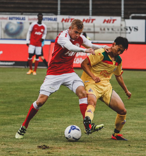 Früh kam die Fortuna bereits zu ihrer ersten Chance. In der 2. Minute war es Hamza Salman, der nach einem Zuspiel von Mike Owusu den gegnerischen Keeper prüfte. Die Fortuna konnte sich in den ersten Minuten gut in der Hälfte der Kölner festsetzen und sich mehrere kleinere Chancen herausspielen, welche allerdings nicht zum Torerfolg führten. Der 1.FC Köln kam in den Anfangsminuten nur mit wenigen Chancen vor das Tor von Kevin Rauhut. Nach einer Ecke von Hamza Salman verfehlte Jannik Löhden das Tor mit einem Kopfball nur knapp (8.). Nach 10 Minuten gab es dann die erste Torannäherung für den 1. FC Köln, aber Rauhut war hell wach und konnte die Chance vereiteln. Hamza Salman spielte in der 13. Minute eine Ecke mit Francis Ubabuike kurz aus und flankte dann gefährlich vor das Tor, der Schiedsrichter pfiff allerdings Foul an Julian Krahl. In den Folgeminuten, kamen die Gäste aus Köln-Müngersdorf dann zu einigen gefährlichen Situationen. So klärte Timo Hölscher nach einem Fehlpass von Jannik Löhden eine Chance des 1.FC Köln im Strafraum, (15.). Kurz darauf kam Christian Clemens von der 16er Kante frei zum Schuss, doch Kevin Rauhut machte die Torwartecke zu und klärte zum Eckball. Die anschließende Ecke brachten die Kölner in den Strafraum, aber der Kopfball landetet zum Glück für Fortuna nur auf dem Tornetz (17.). In der 19. Minute köpft Salman nach einem Einwurf von Dan-Patrick Poggenberg auf das Tor der Kölner, aber Krahl hält den Ball sicher. Kurz darauf kam es zu einer brenzligen Situation vor dem Tor der Fortuna, welche mit einem Freistoß für den 1.FC Köln endete, der allerdings deutlich über dem Tor landete (20.). In der 26. Minute gab es dann die Doppelchance für die Jungs aus der Südstadt. Salman spielt eine kurze Ecke mit Ubabuike aus, welcher den vor dem Tor wartenden Julian Günter-Schmidt sah. Dieser traf allerdings nur den linken Pfosten. Der Ball blieb aber weiterhin gefährlich und fand den Weg in den 5er zu Francis Ubabuike, welcher allerdings in die Arme des Kölner Keepers köpfte. In der 28. Minute setzte sich Owusu stark durch und legte auf Höhe der Strafraumlinie für Ochojski ab, welcher allerdings am linken Pfosten vorbei zog. Nach 30 Minuten gab es einen Freistoß auf Höhe der Mittelinie für die Fortuna, der zunächst gefährlich für das Tor der Geißböcke zu werden schien, dann jedoch in einem Konter für den 1. FC Köln endete, welchen Kevin Rauhut aber parieren konnte. In der 34. Minute spielten die Gäste einen langen Ball auf Henning in den Strafraum, welcher den Ball per Kopf auf Hwang ablegte. Christian Clemens erhielt außen den Ball, hatte das Auge für Lucas Musculus, der aber deutlich über das Tor der Fortuna schoss. Kurz vor der Pause kam die Fortuna wieder besser in das Spiel und erzwang sich einige gute Chancen. So hatten die Gäste in der 40. Minute Glück, als Günther-Schmidt aus kürzester Distanz den Kölner Keeper traf und ein weiteres Mal in der 43. Minute, als Owusu an Krahl scheiterte. Die Fortuna ging mit einem leichten Chancenplus und den deutlich zwingenderen Chancen in die Halbzeitpause. Tore wollten allerdings noch nicht fallen.