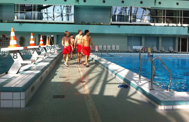 Eine Trainingseinheit der besonderen Art konnten die Spieler der Fortuna am Dienstag in Anspruch nehmen. Unser Partner KölnBäder lud das gesamte Team zur Regeneration in das schöne Agrippabad ein. Hier zeigten die Spieler, dass sie nicht nur auf dem Fußballplatz Talent haben, sondern auch artistisch vom Turm springen können.