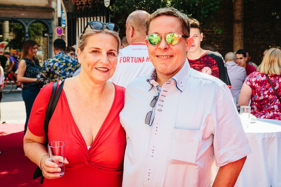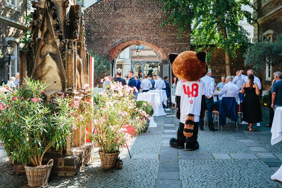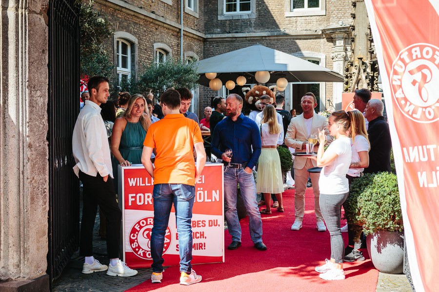 Ein DJ, kühle Getränke von Gaffel und der Haaner Felsenquelle und die Top-Location mitten in Köln sorgten für das Wohlgefühl aller Gäste. Fortuna-Maskottchen „Fred“ durfte natürlich auch nicht fehlen und war vor allem für die jüngsten Fans da.