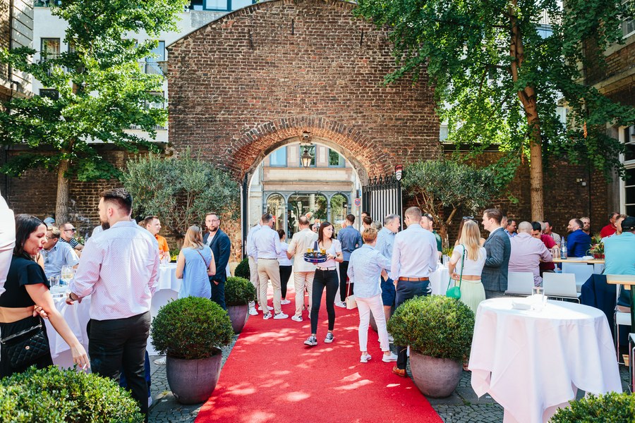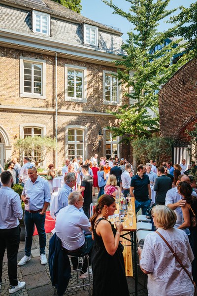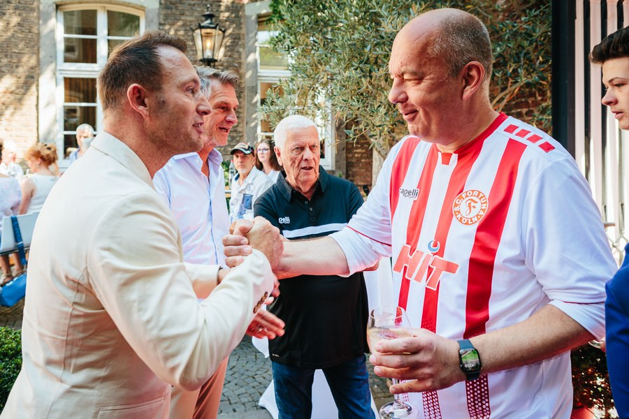 Bei Sonnenschein und blauem Himmel wurde die Veranstaltung von Geschäftsführer Benjamin Bruns eingeleitet und Gastgeber Rudolf von Borris, dem großer Dank zur Ausrichtung des Events gilt. Unter der Festtagsgemeinde waren neben Partnern und Sponsoren auch Vertreter aus der Kölner Politik. „In den vergangenen Spielzeiten sind wir immer gut gestartet und am Ende ist uns die Luft ausgegangen. Vielleicht ist es diese Saison einfach andersherum“, zeigte sich Bruns trotz der Niederlage am Tag zuvor positiv mit Ausblick auf die neue Saison. Auch Fortuna-Präsident Hanns-Jörg Westendorf zeigte sich beeindruckt von dem ambitionierten Auftreten des Vereins und lobte die gute Integration von jungen Spielern in den Profikader.